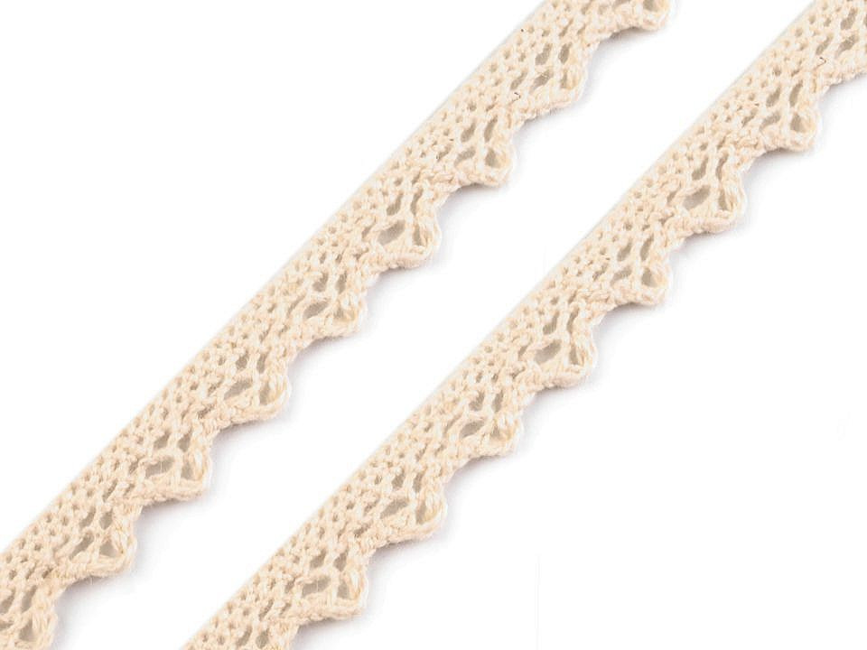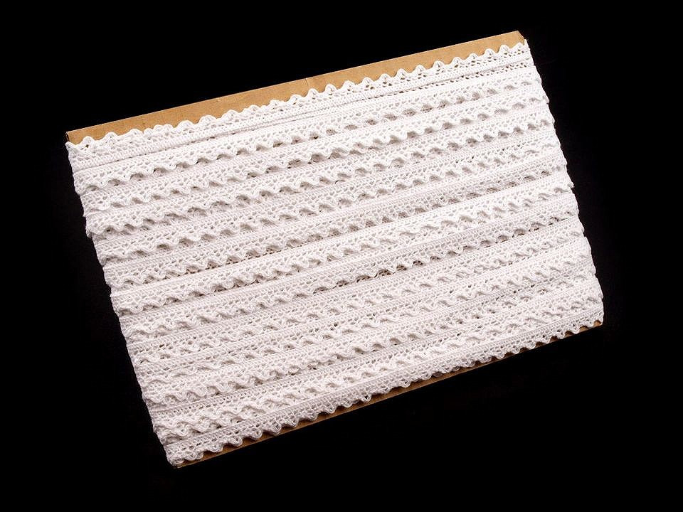 Bavlněná paličkovaná krajka je zakončená jemnými vlnkami.