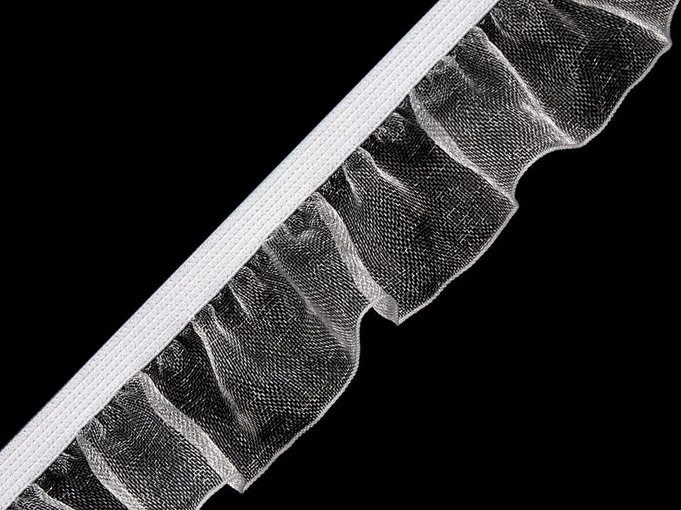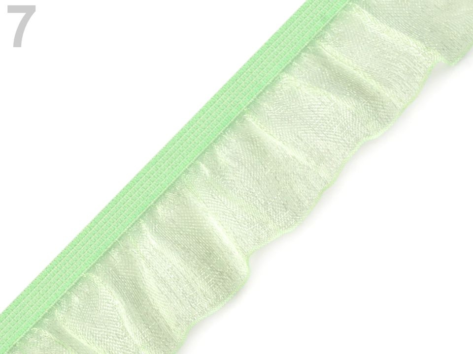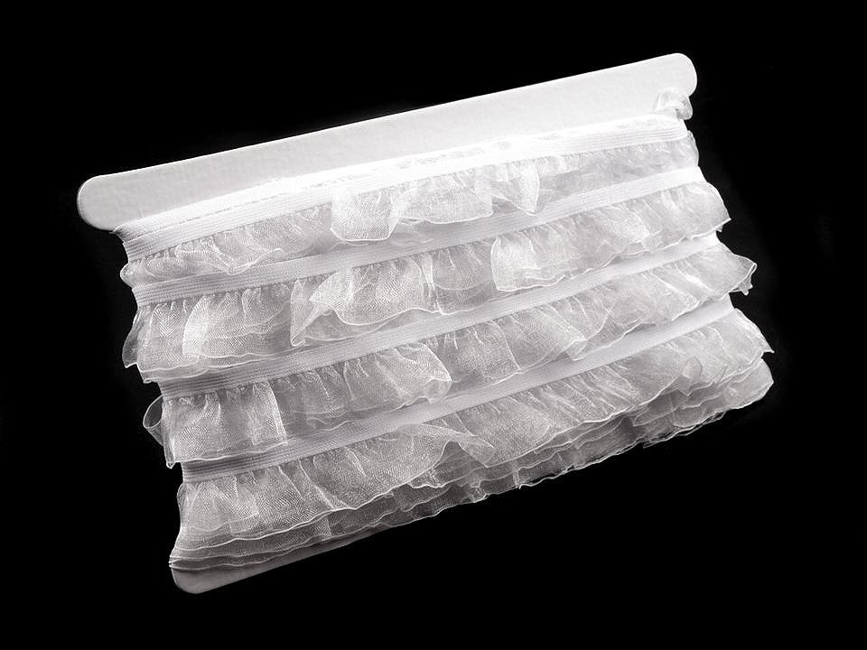 Ozdobná pruženka s volánkem má jemně lesklý povrch.
