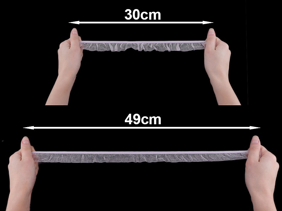 Použití: Pruženku využijete na ozdobení spodního prádla, podvazků, šatů, halenek, triček nebo sukní. Může se také použít na olemování polštářů nebo ubrusů.