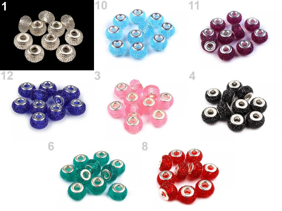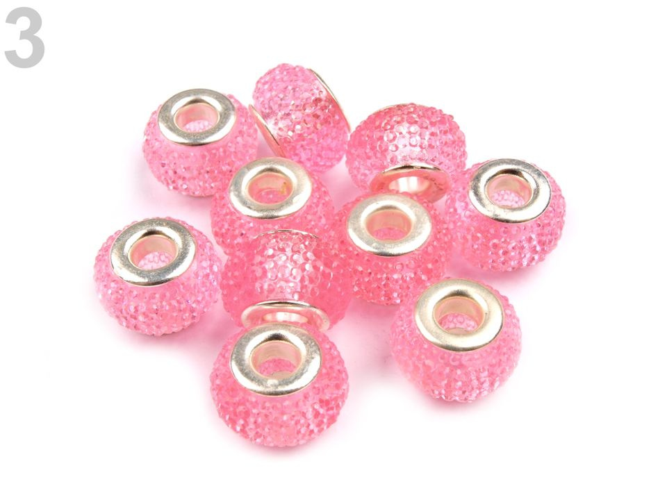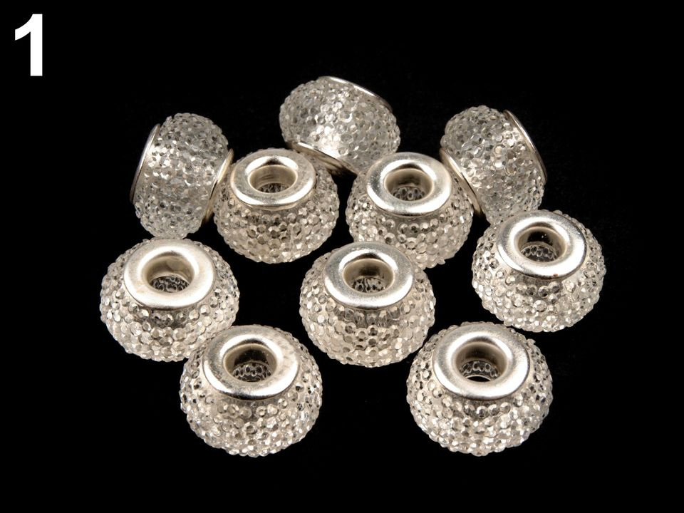 Transparentní korálky s velkým průvlekem mají díky drobných plošek výrazný lesk. Jejich velikou výhodou je lehkost použitého materiálu. Průvlek je začištěný kovovou průchodkou.
