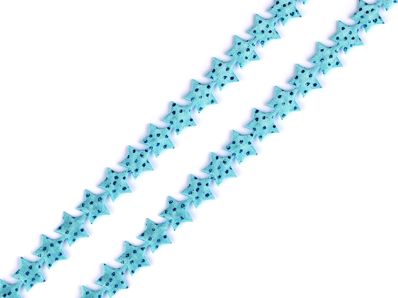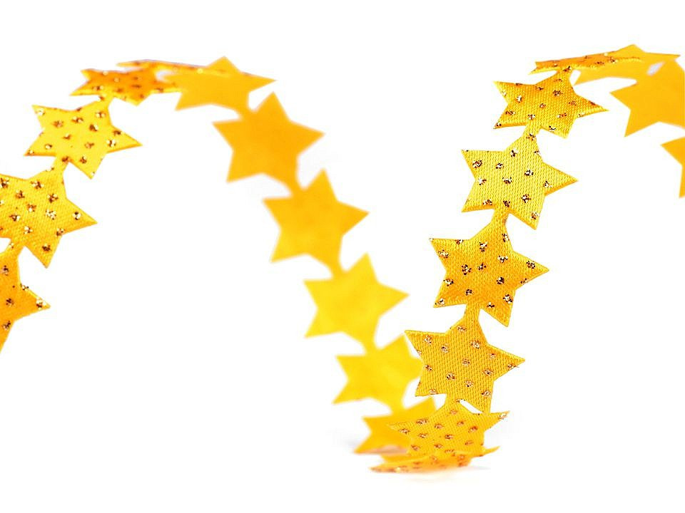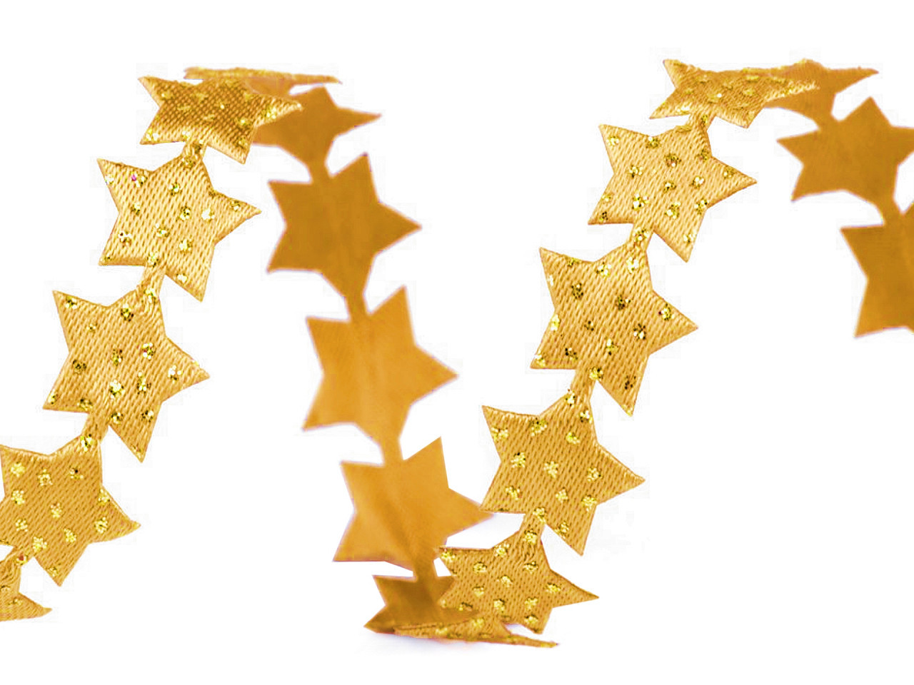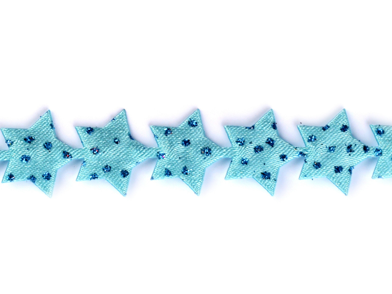Saténový prýmek zdobí hvězdy, které můžete odstřihnout a použít i samostatně. Je doplněný třpytivými glitry.