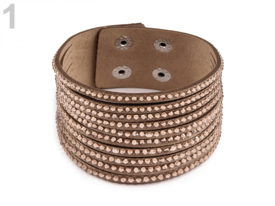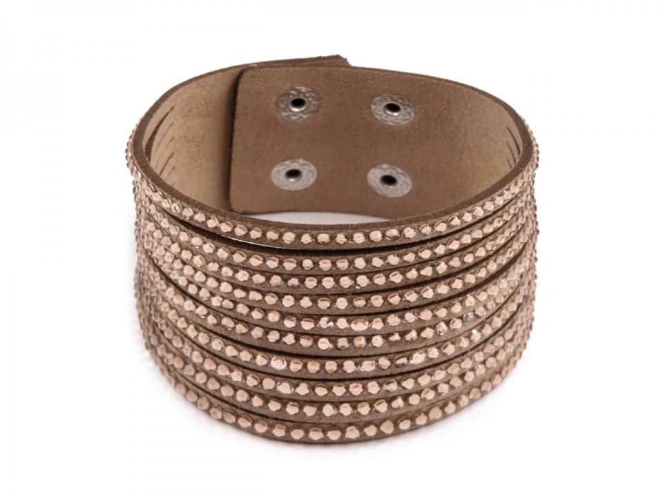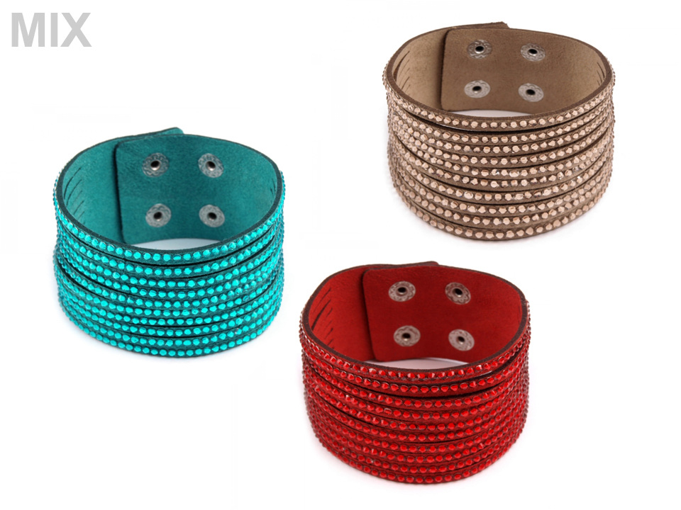 Efektní třpytivý náramek se zajímavým designem si můžete vzít k jakémukoliv outfitu. Náramek je neúplně rozstřižený na 10 proužků, působí bohatým dojmem. Proužky jsou hustě osázené broušenými kamínky.