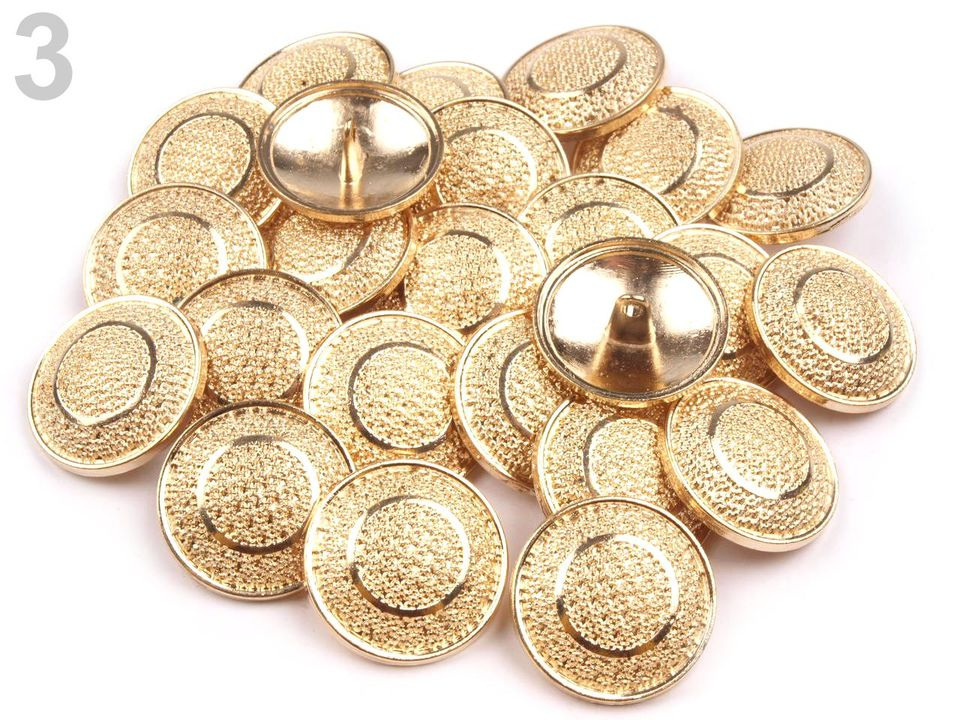 Kovové knoflíky s originálním designem jsou vyrobené ze slitiny zinku a nemagnetických kovů. Knoflíky elegantně vyniknou na kabátech, sakách apod. Jsou vhodné také na doplňky, například kabelky, tašky nebo klobouky.