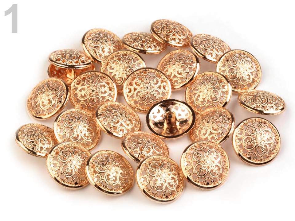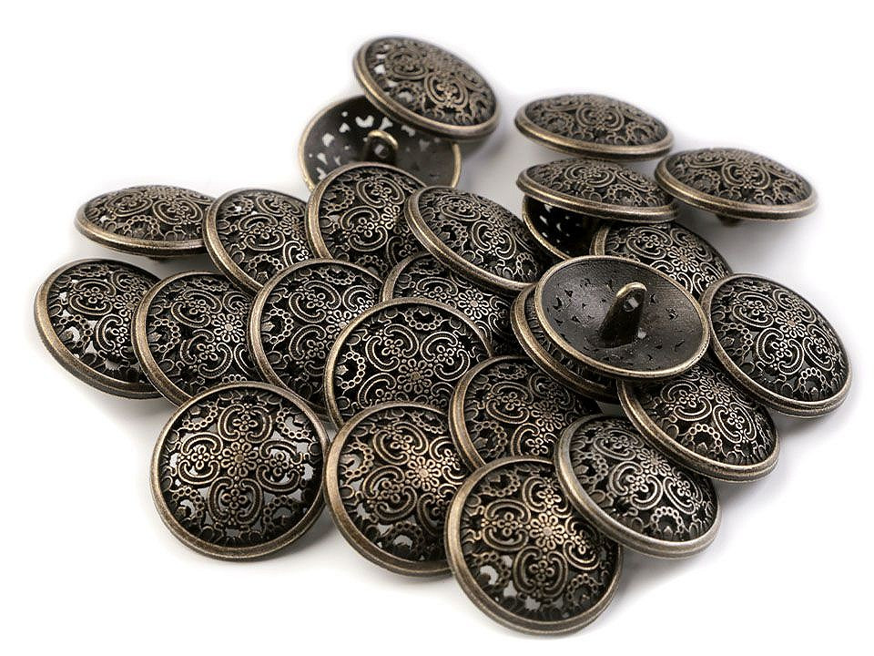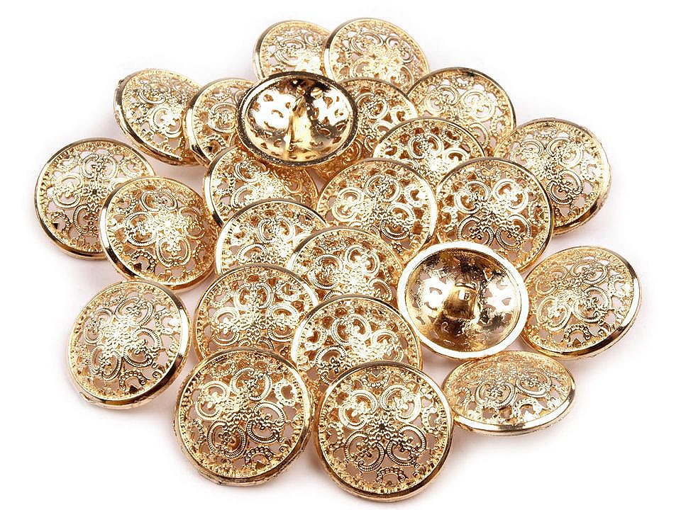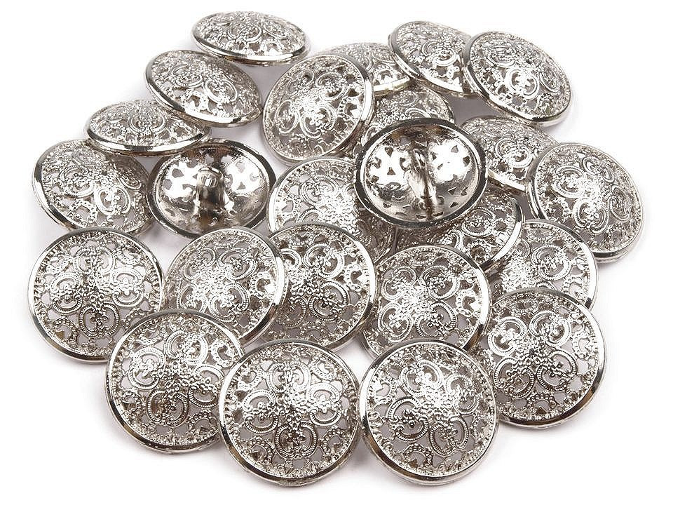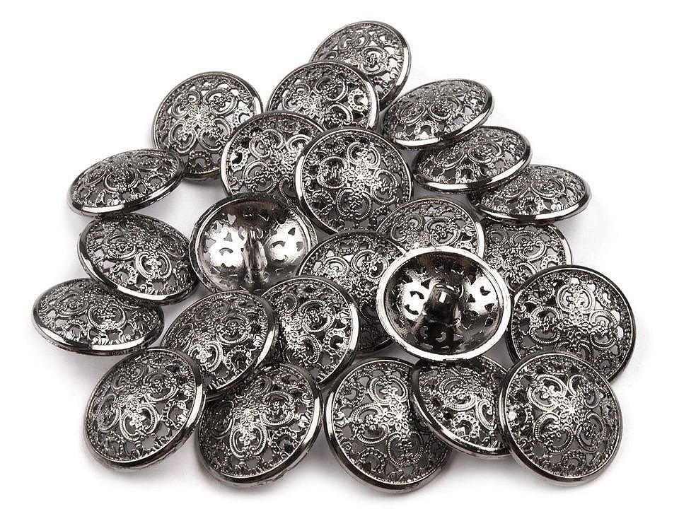 Kovové knoflíky s filigránovým vzorem jsou vyrobené ze slitiny zinku a nemagnetických kovů. Mají spodní přišívání. Knoflíky elegantně vyniknou na kabátech, sakách, košilích apod. Zajímavě ozdobí také kabelky, tašky nebo klobouky.