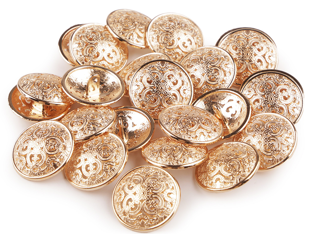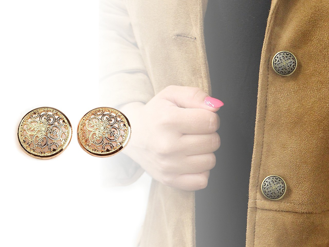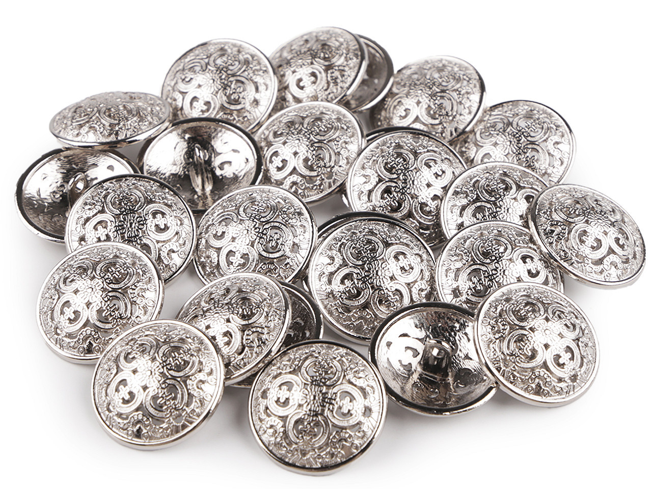 Kovové knoflíky s filigránovým vzorem jsou vyrobené ze slitiny zinku a nemagnetických kovů. Mají spodní přišívání. Knoflíky elegantně vyniknou na kabátech, sakách, košilích apod. Zajímavě ozdobí také kabelky, tašky nebo klobouky.