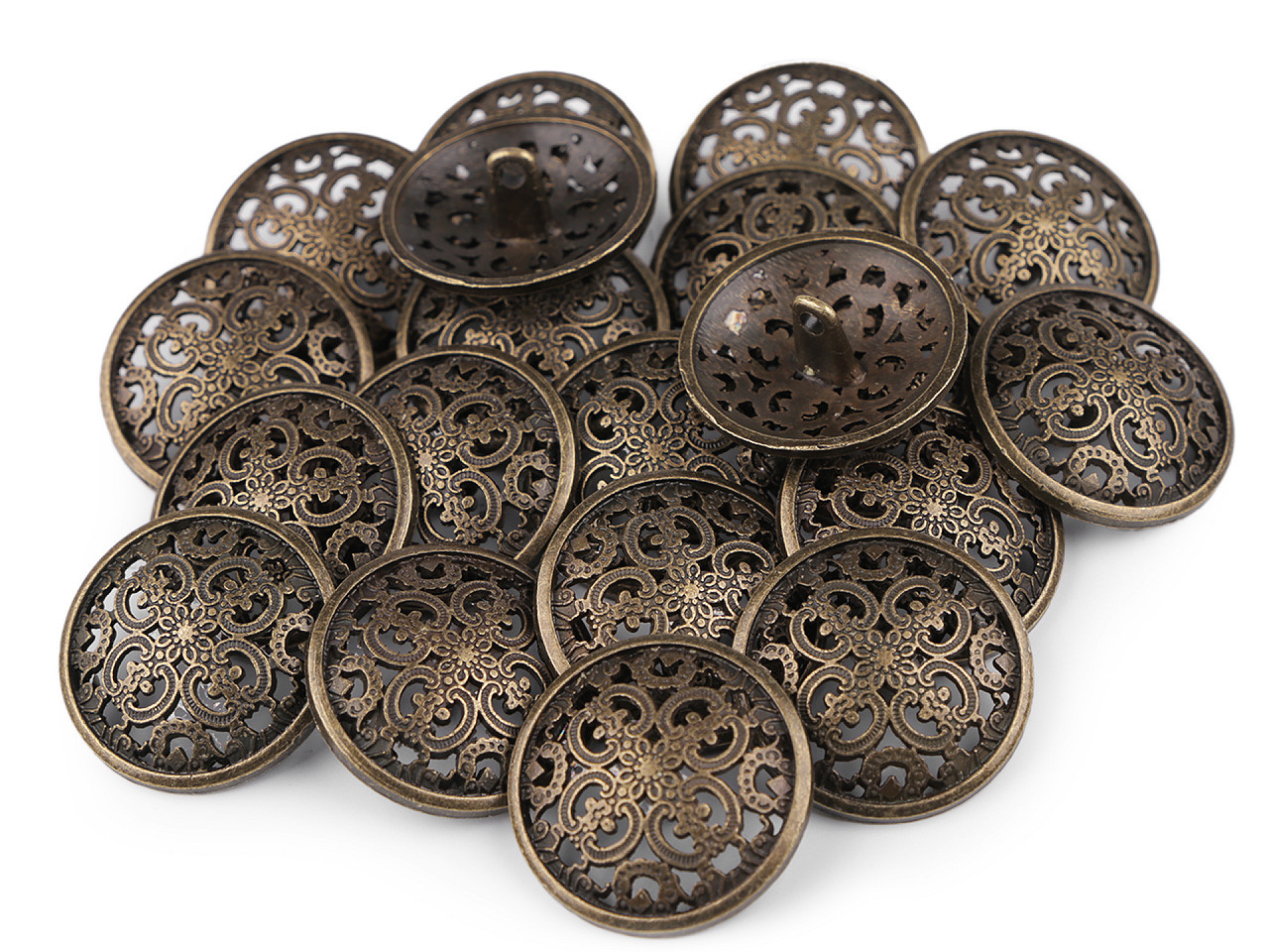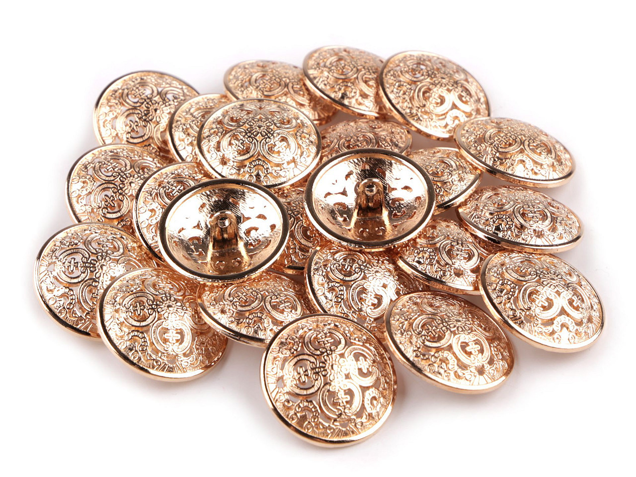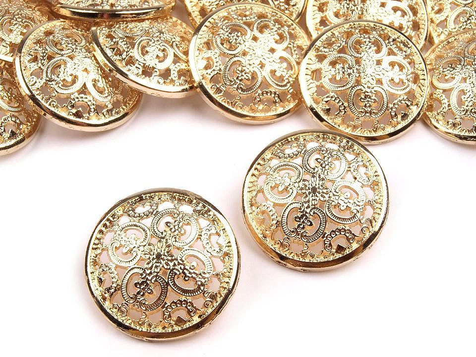 Filigránový vzor dodává knoflíkům umělecký nádech. Jsou vyrobené ze slitiny zinku a nemagnetických kovů. Mají spodní přišívání. Knoflíky podtrhnou dokonalost kabátů, sak apod. Vyniknou také na doplňcích jako jsou kabelky, tašky nebo klobouky.