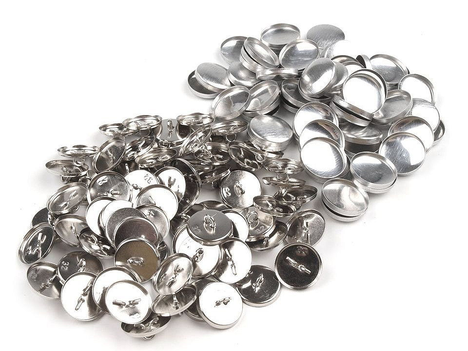 Knoflík na potahování, se spodním přišíváním, je celokovový. K výhodám takovýchto knoflíků patří, že si je můžete potáhnout jakýmkoliv materiálem a vytvořit si tak vlastní design. Využijí je i čalouníci.