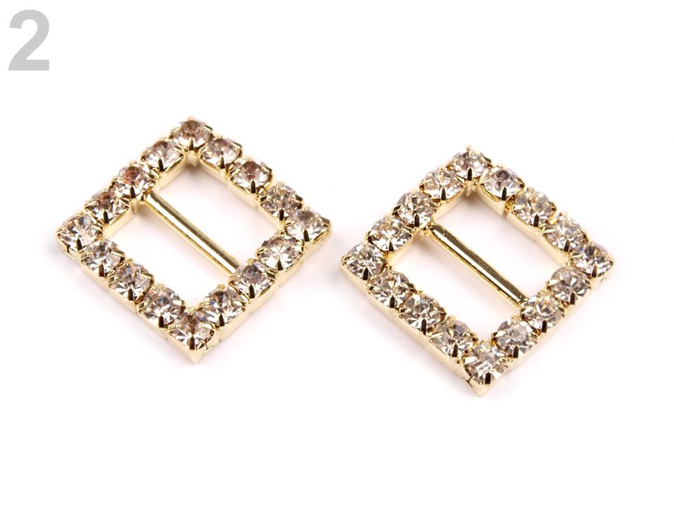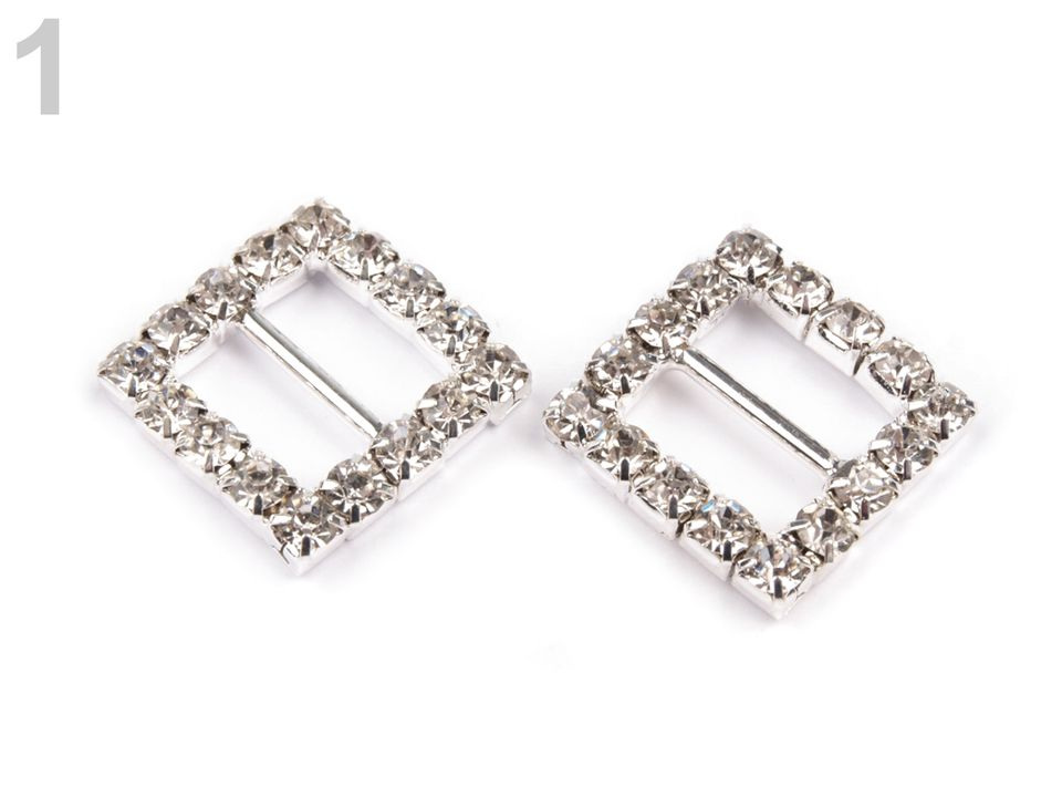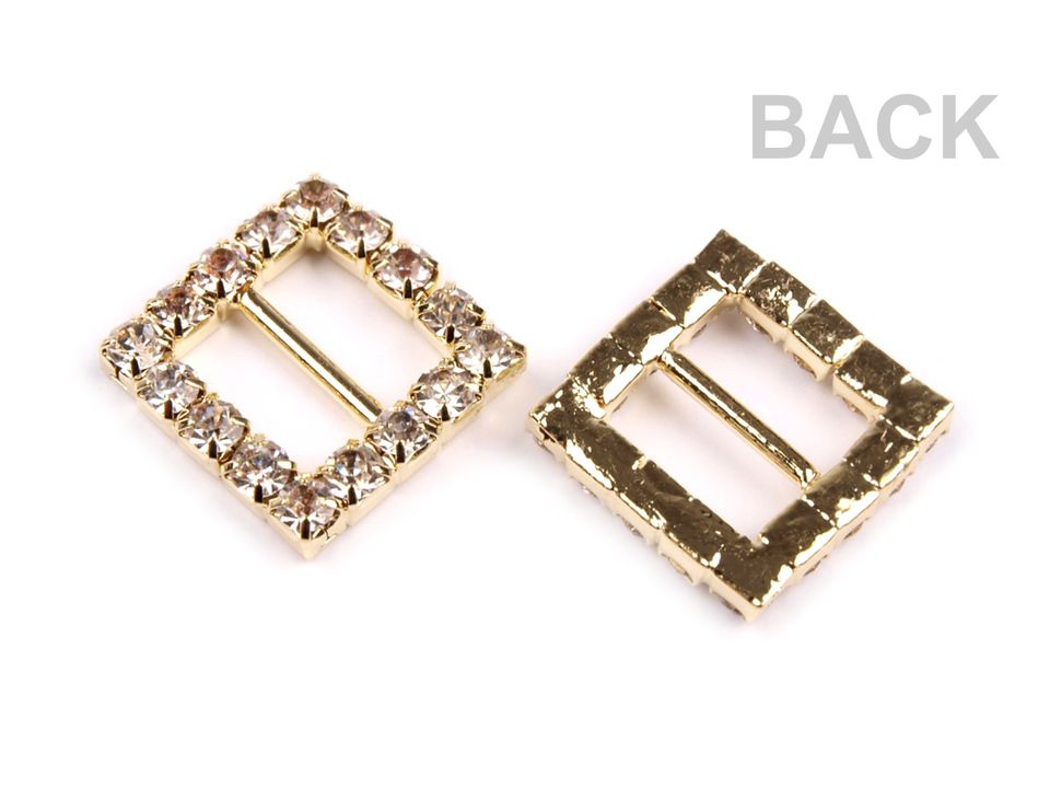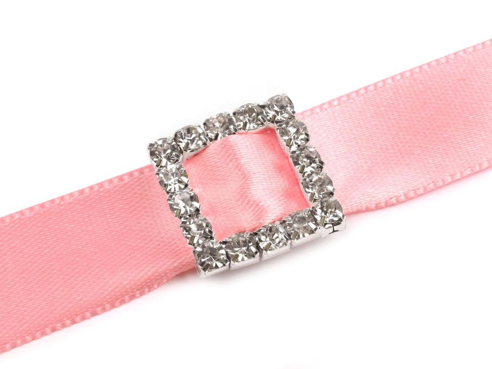Luxusní štrasový průvlek zdobí třpytivé broušené kamínky. Má tvar čtverce s tyčinkou uprostřed, přes kterou můžete provléct stuhu o šíři 10 mm a ozdobit pozvánky, přáníčka, podvazky apod.
