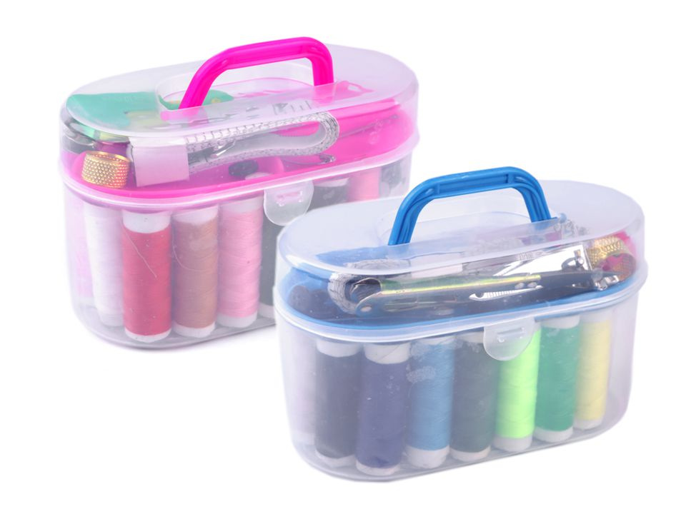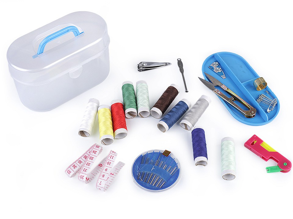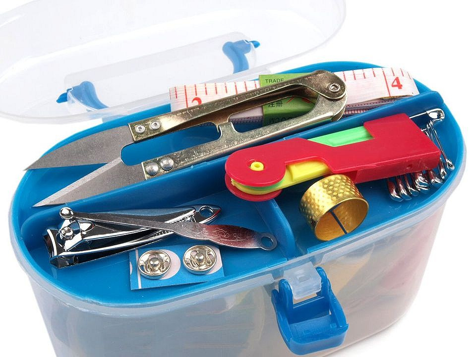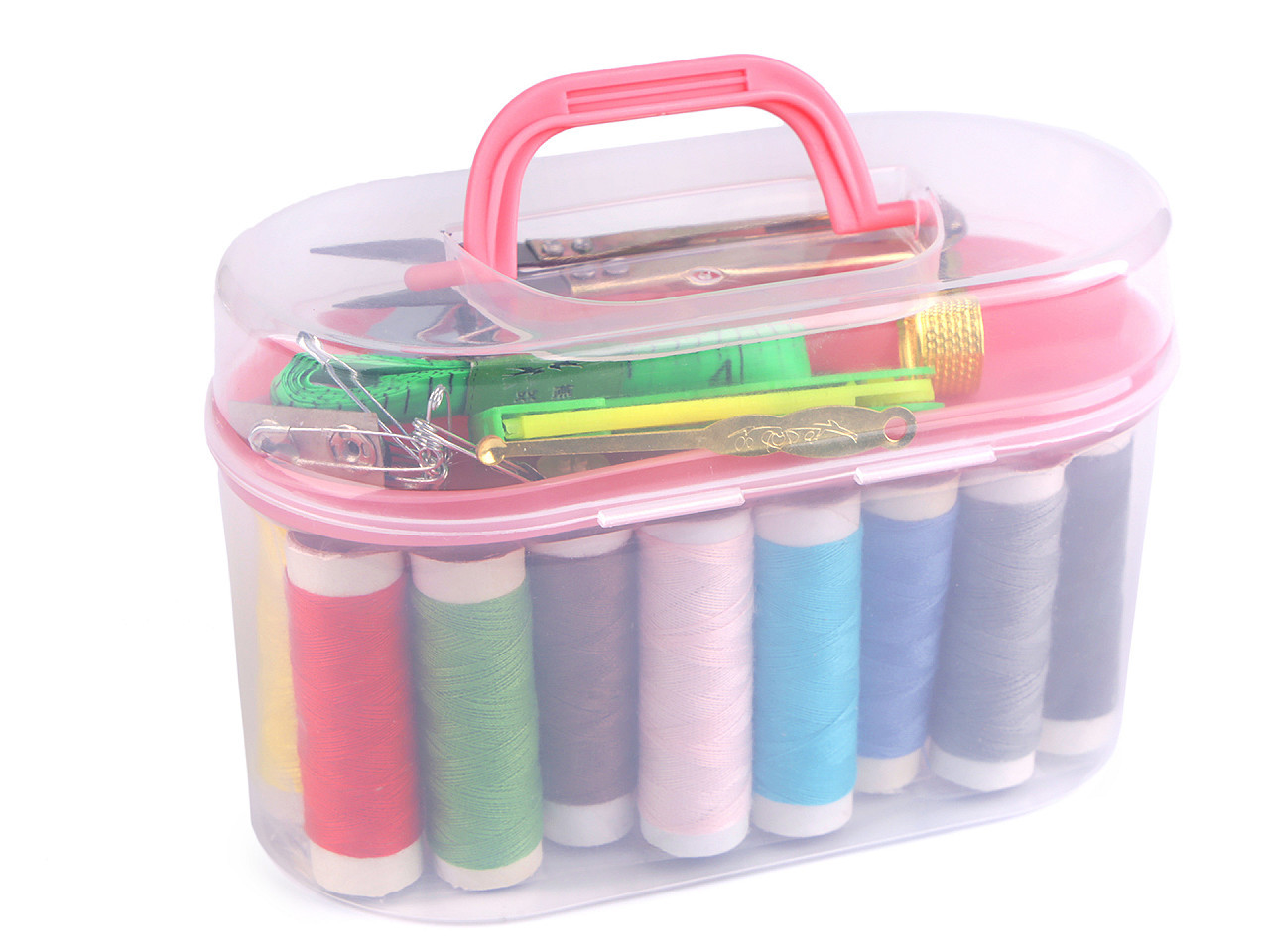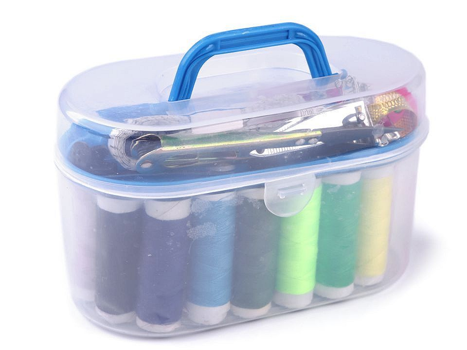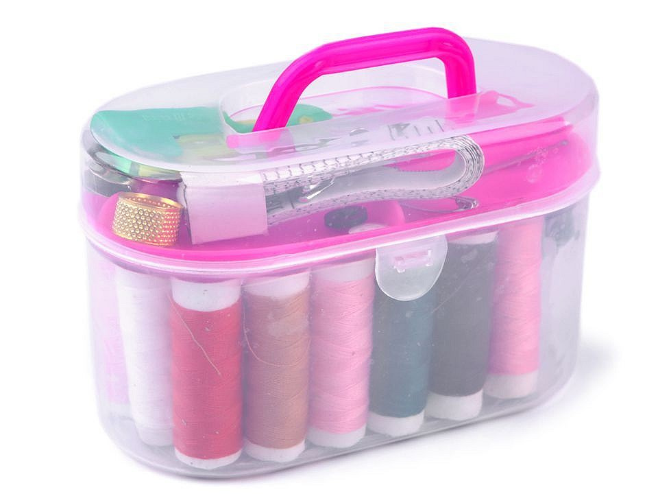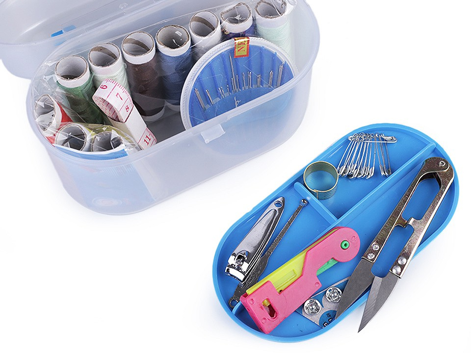 Sada na šití v praktickém plastovém boxu obsahuje všechny základní věci, které potřebujete k šití nebo opravení vašeho oblečení. Box se skládá ze dvou částí - z kufříku a odnímatelného patra uvnitř.