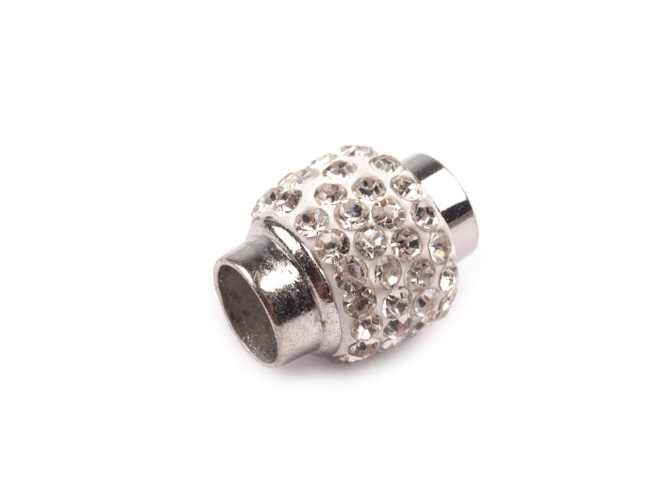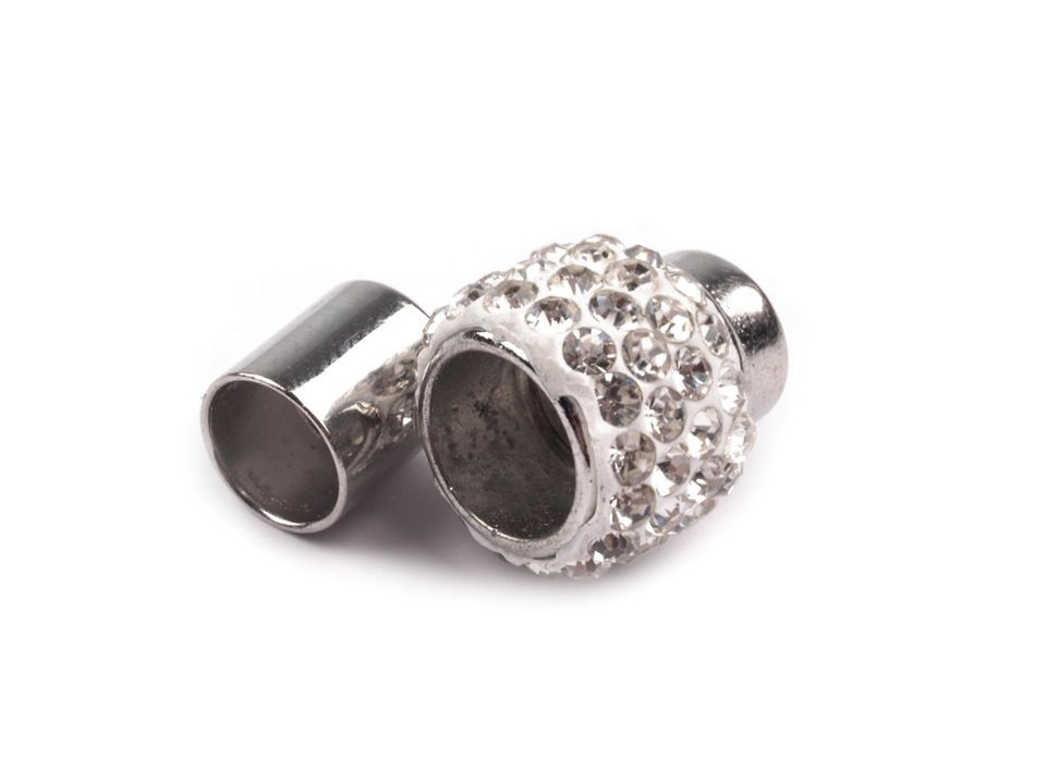 Třpytivé magnetické zapínání dodá vašim náhrdelníkům a náramkům luxusní vzhled. Je vlepovací, vhodnými materiály k použití jsou především šňůrky, modistické dutinky nebo jiný textilní materiál.