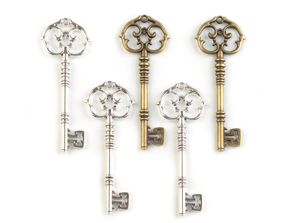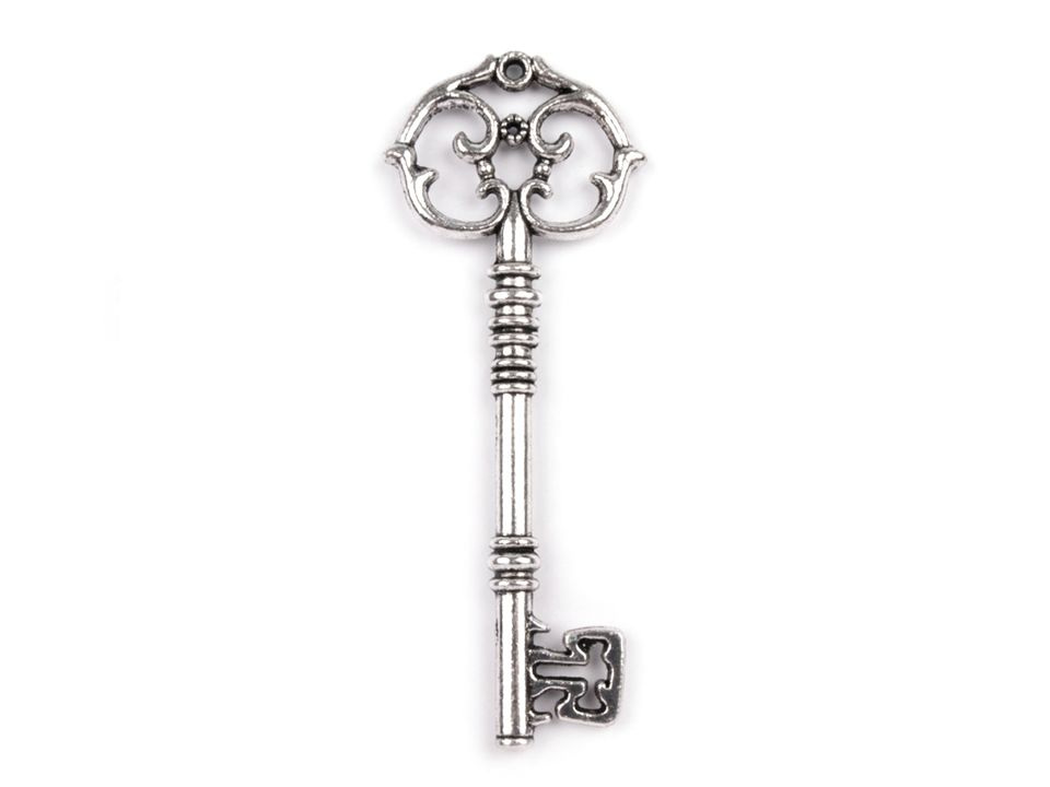 Kovový přívěsek s designem starobylého klíče vypadá, jako by dokázal odemknout dveře do tajuplné zahrady. Využijete ho jak při výrobě své bižuterie tak pro různé neotřelé dekorace. Přívěsek je oboustranný,