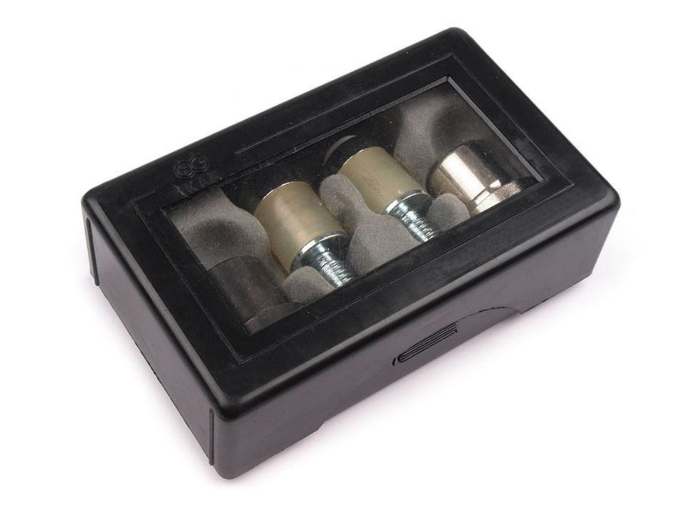 Piston, který se skládá ze dvou částí, je určený k nýtování plastových patentek ve tvaru srdce a hvězdy. Používá se tak, že větší část pistonu umístíme v dolní části lisu a vložíme látku s patentkou. Druhou část zašroubujeme do horní části lisu.