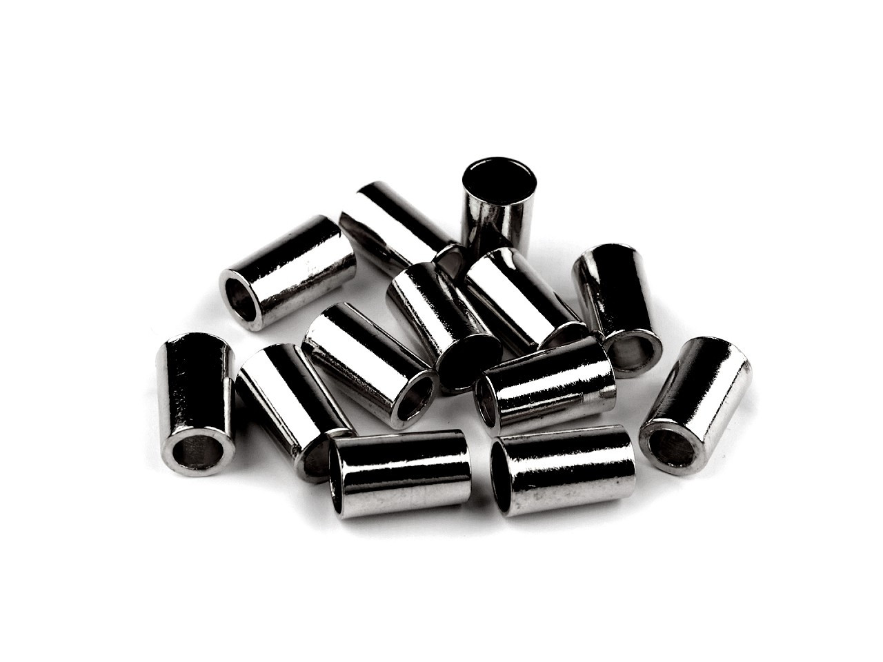 Hladká kovová koncovka zabraňuje vytažení šnůry z tunýlku. Využijete ji k zakončení šňůrek, které lemují rukávy, kapuce nebo spodní lem mikin a bund.