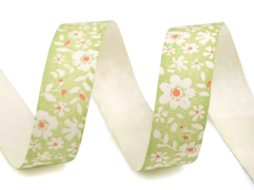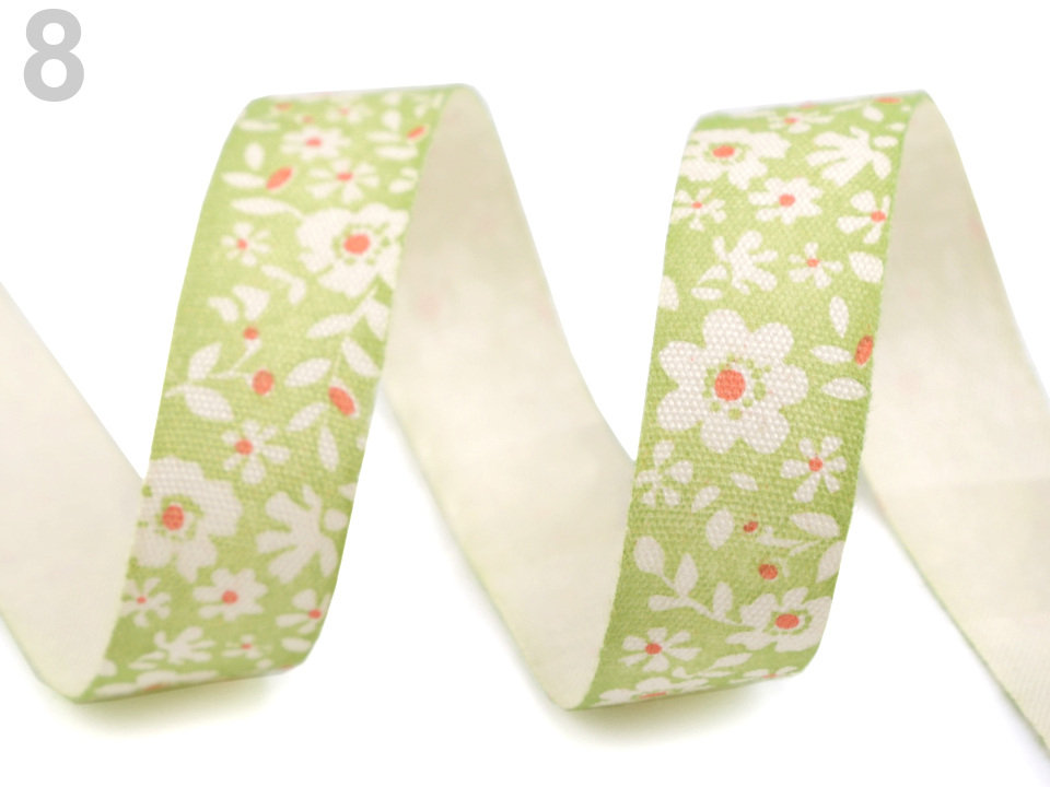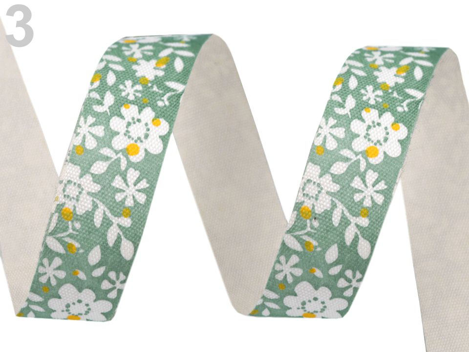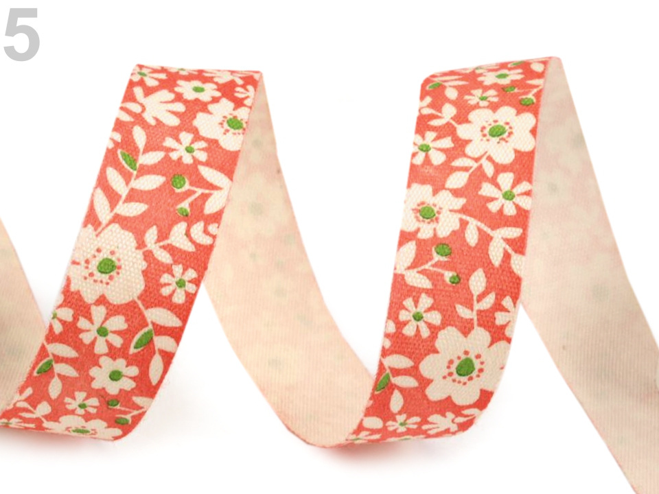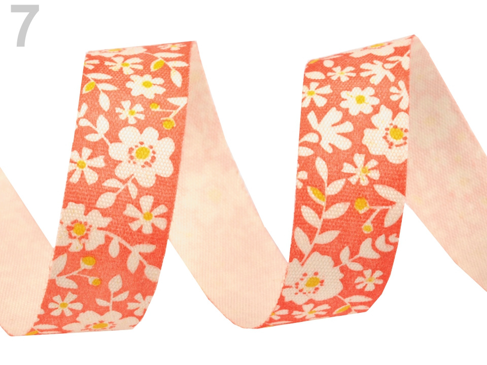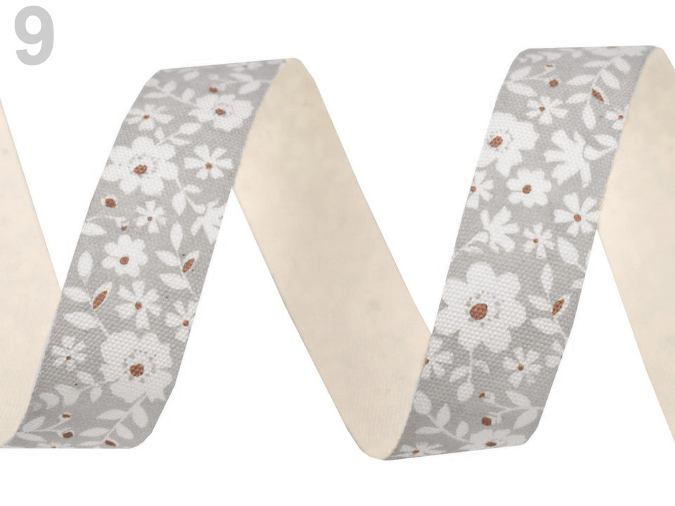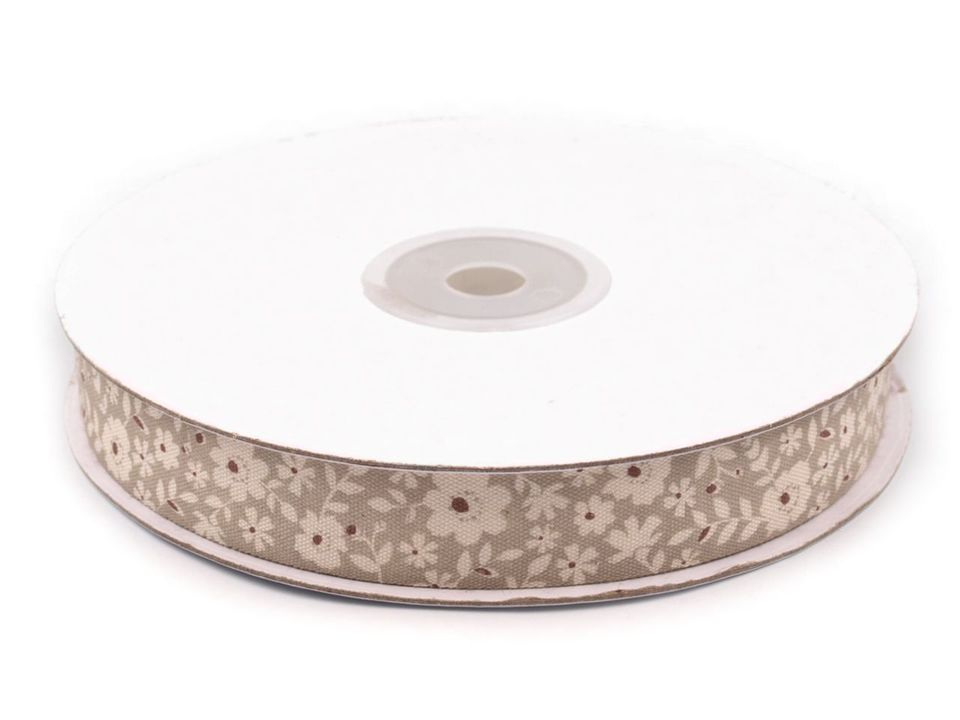 Bavlněnou stuhu zdobí květovaný potisk, který je vhodný na výrobu nebo ozdobení dekorací ve venkovském stylu.