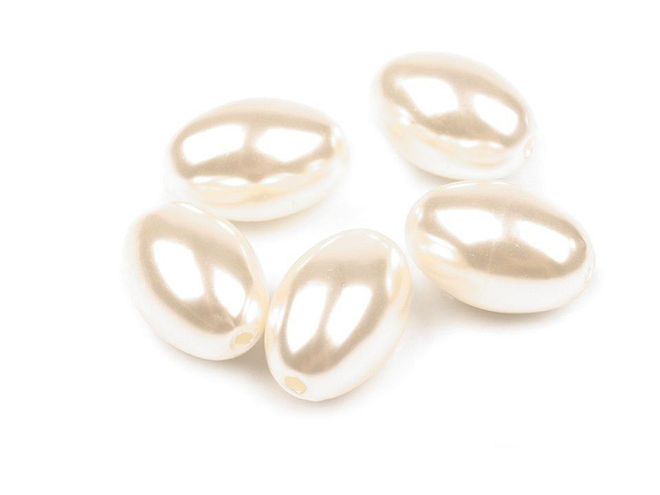 Nabízíme vám je v efektní plastové imitaci, ve tvaru olivy. Mají stejný lesk na jaký jste byli zvyklí jen u skleněných voskovaných perlí. Navíc je jejich výhodou lehká hmotnost, nemusíte se bát použít je do dlouhých náhrdelníků. Vašim šperkům dodají neopakovatelnou noblesu. Stačí je jednoduše navléct a doplnit kovovými komponenty či jinými druhy korálků dle vašeho vkusu a získáte jedinečný elegantní šperk. Inspirace k použití viz foto. Jako návlekový materiál jsou vhodná lanka.