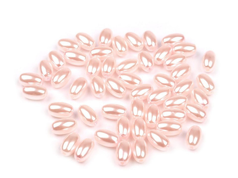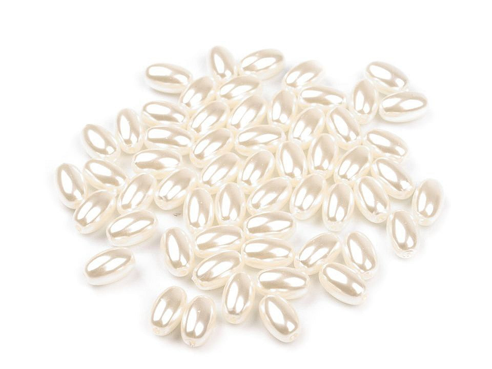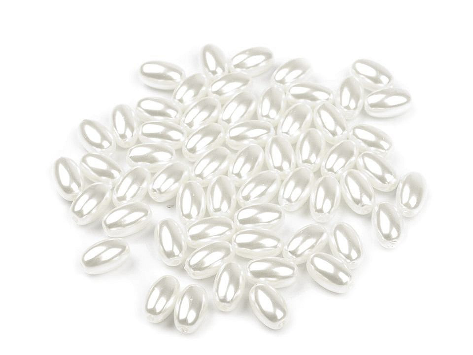 Nabízíme vám je v efektní plastové imitaci, ve tvaru olivy. Mají stejný lesk na jaký jste byli zvyklí jen u skleněných voskovaných perlí. Navíc je jejich výhodou nízká hmotnost, nemusíte se bát použít je do dlouhých náhrdelníků. Vašim šperkům dodají neopakovatelnou noblesu. Stačí je jednoduše navléct a doplnit kovovými komponenty či jinými druhy korálků dle vašeho vkusu a získáte jedinečný elegantní šperk. Inspirace k použití viz foto. Jako návlekový materiál jsou vhodná lanka.