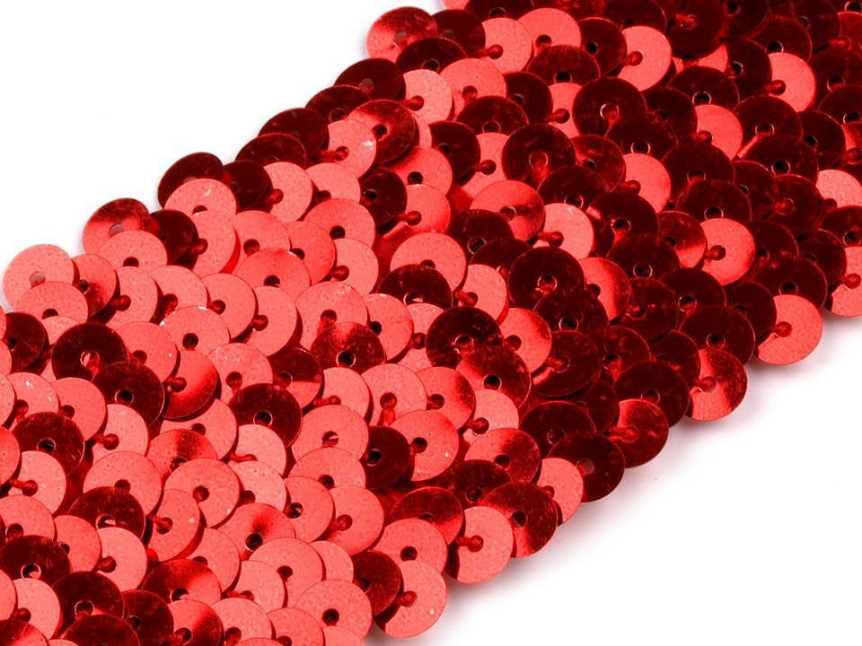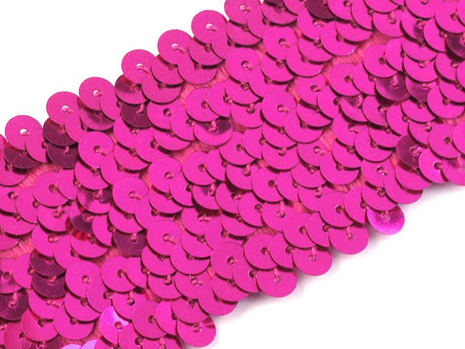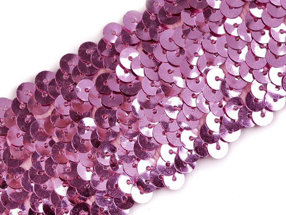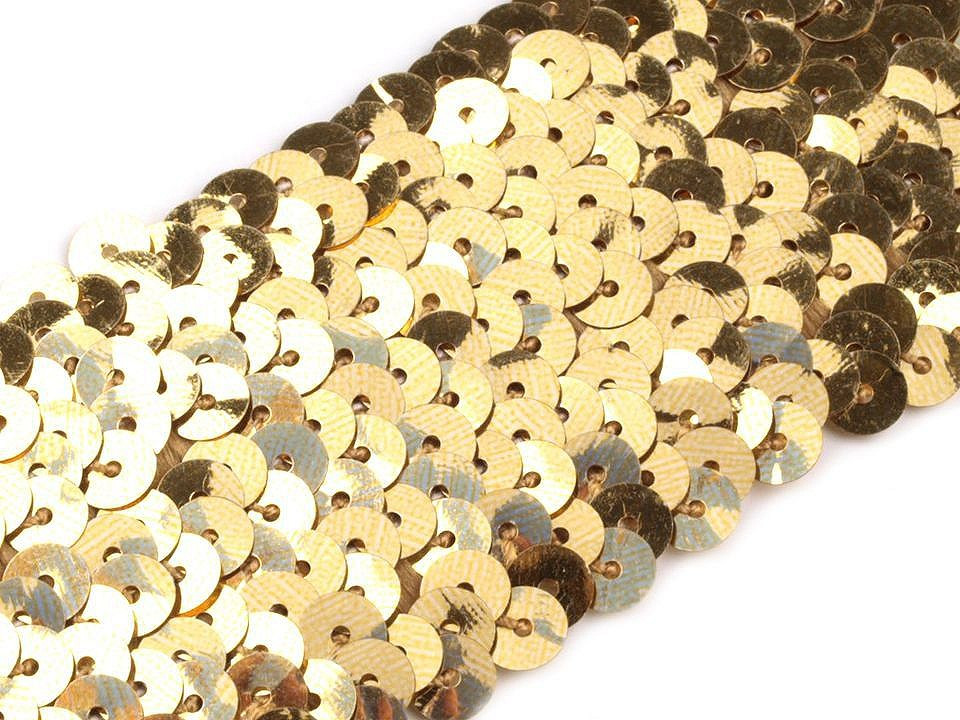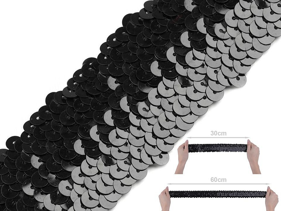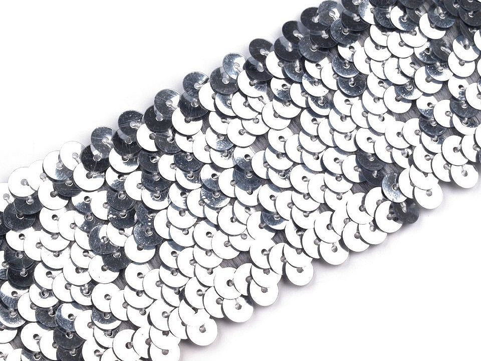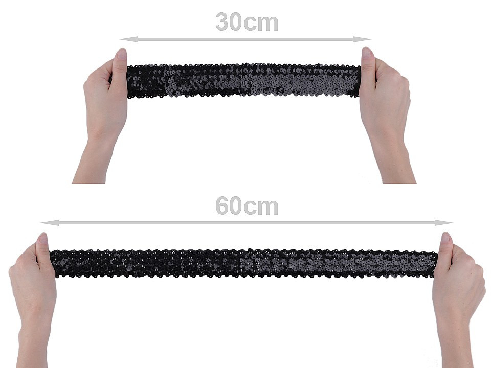 Prýmek zdobí našité hologramové flitry. Díky gumě ve spodní části je elastický.