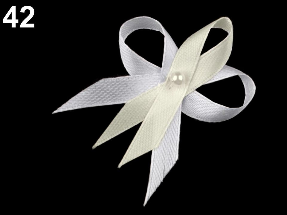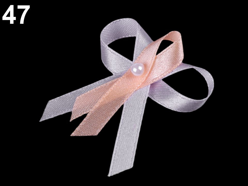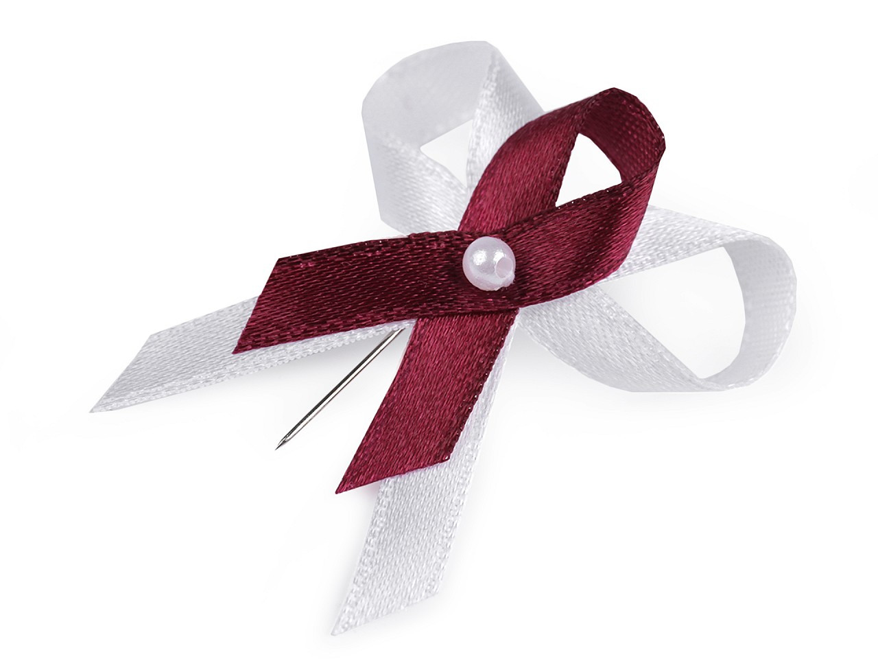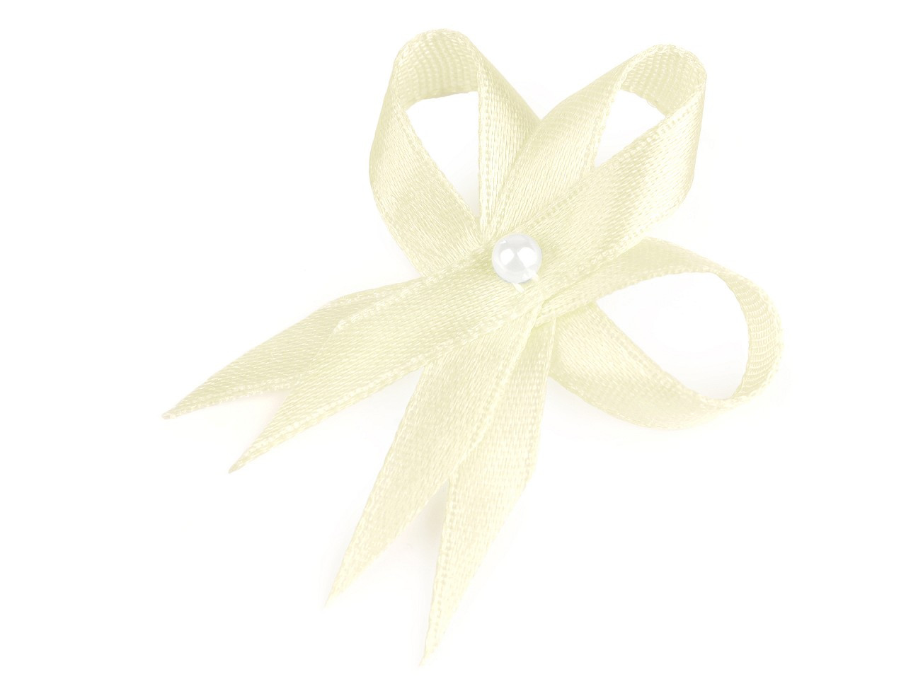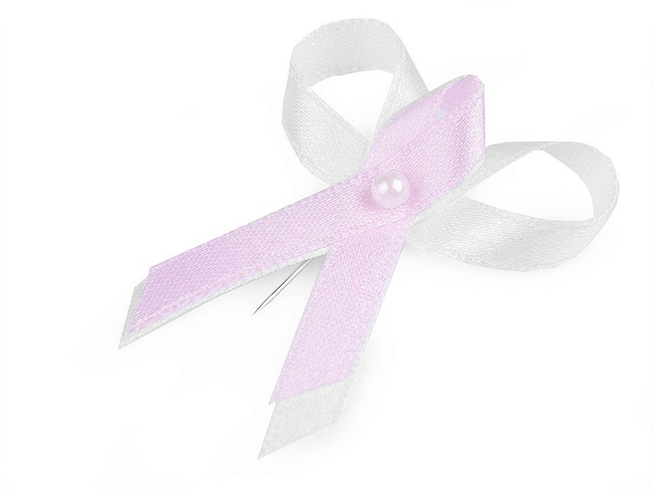 Svatební mašlička o šířce 35 mm je vhodná ke svatebním účelům, ale také k aranžování. Skládá se ze dvou saténových stuh o délce 6 mm, čistě perleťové perličky a špendlíku. Svatební mašličky jsou baleny po 100 ks.
