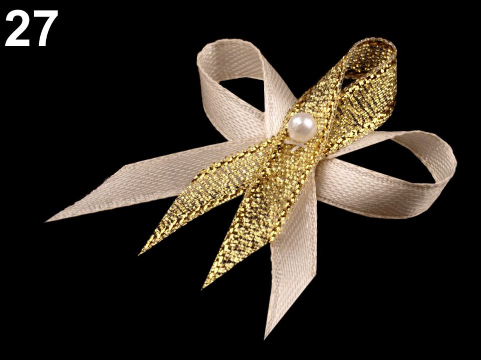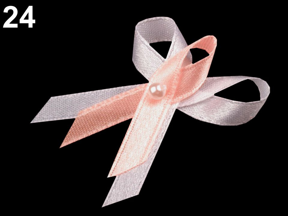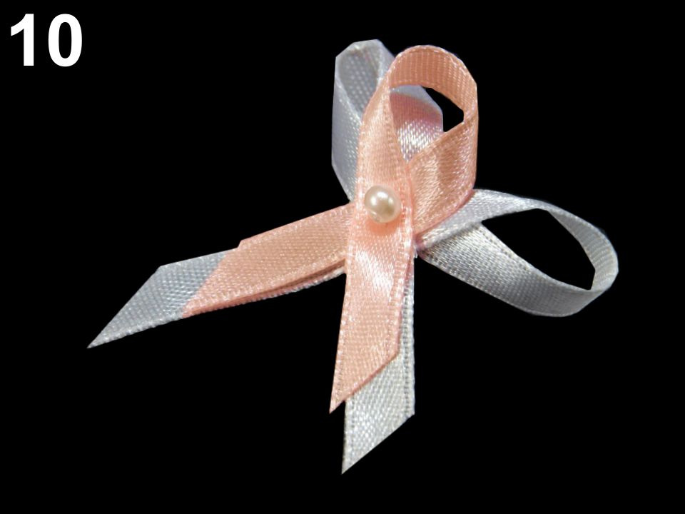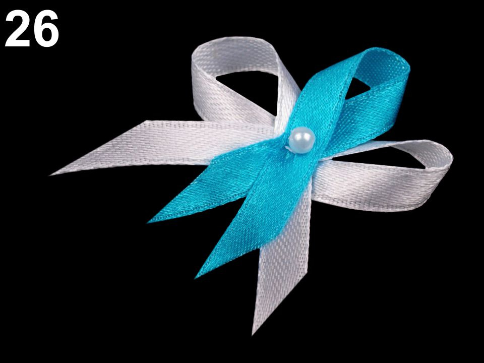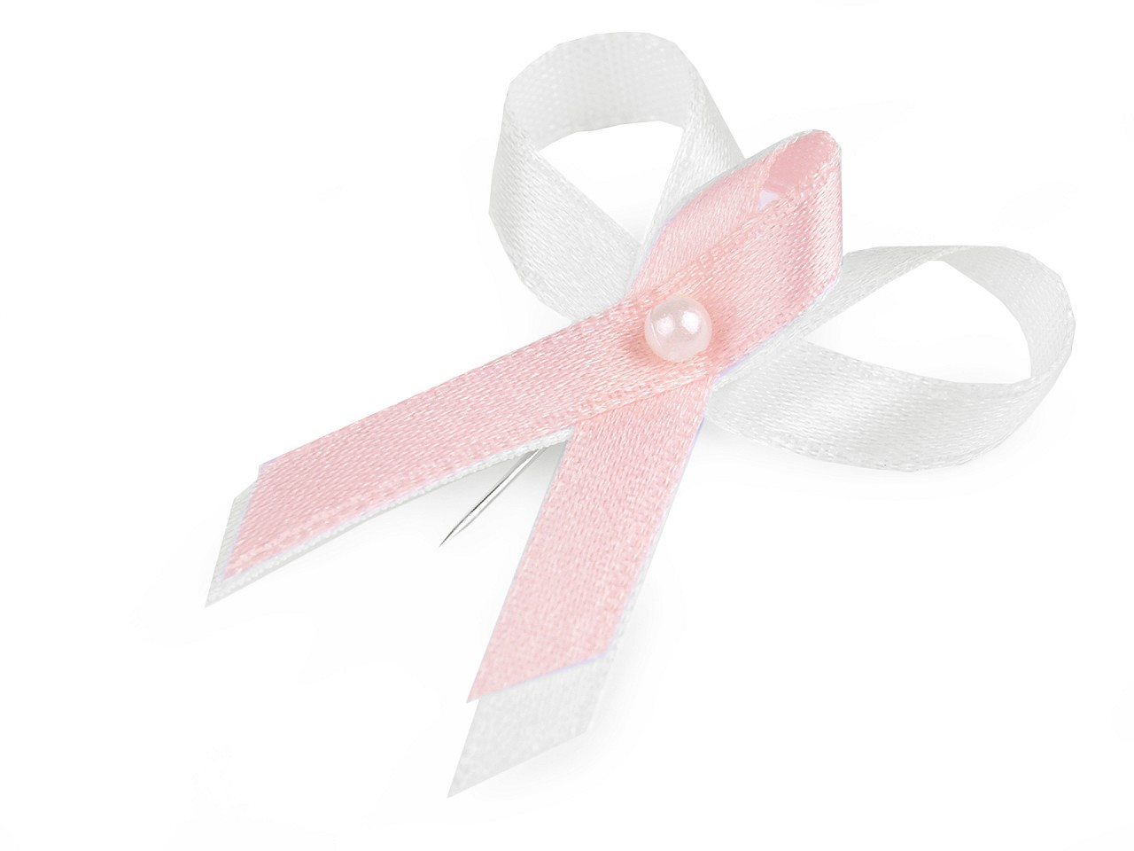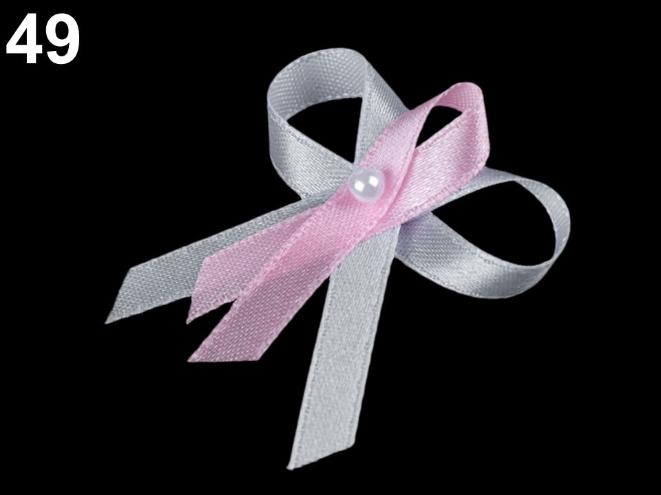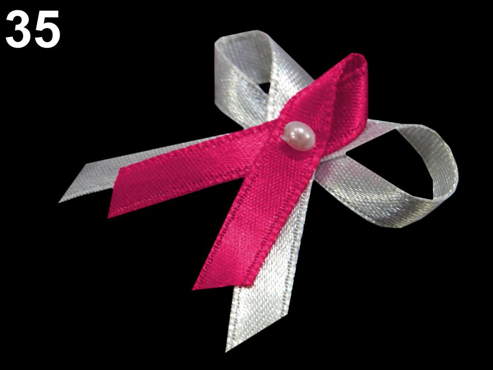 Svatební mašlička o šířce 35 mm je vhodná ke svatebním účelům, ale také k aranžování. Skládá se ze dvou saténových stuh o délce 6 mm, čistě perleťové perličky a špendlíku. Svatební mašličky jsou baleny po 100 ks.