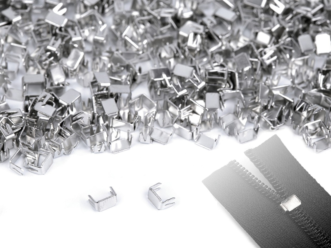 Kovová koncovka slouží k uzavření zipu, aby z něj nevyjel jezdec. Na konec zipu ji připevníte jednoduše - stačí jen přimáčkout zoubky pomocí kleští.