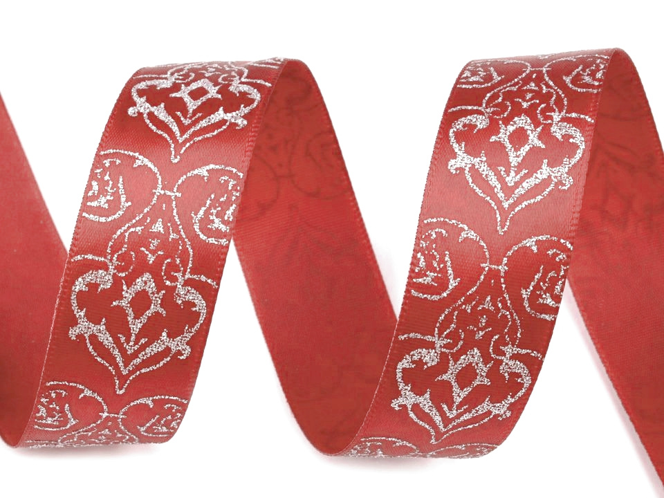 Saténová stuha s ornamenty z glitrů má luxusní nádech a jemně se třpytí.