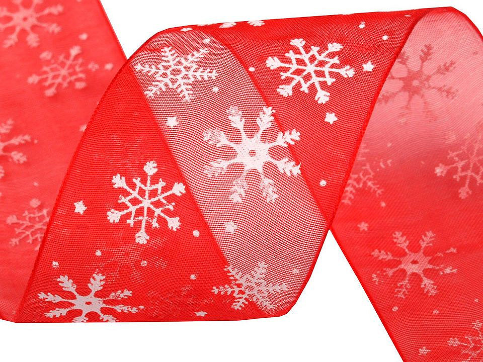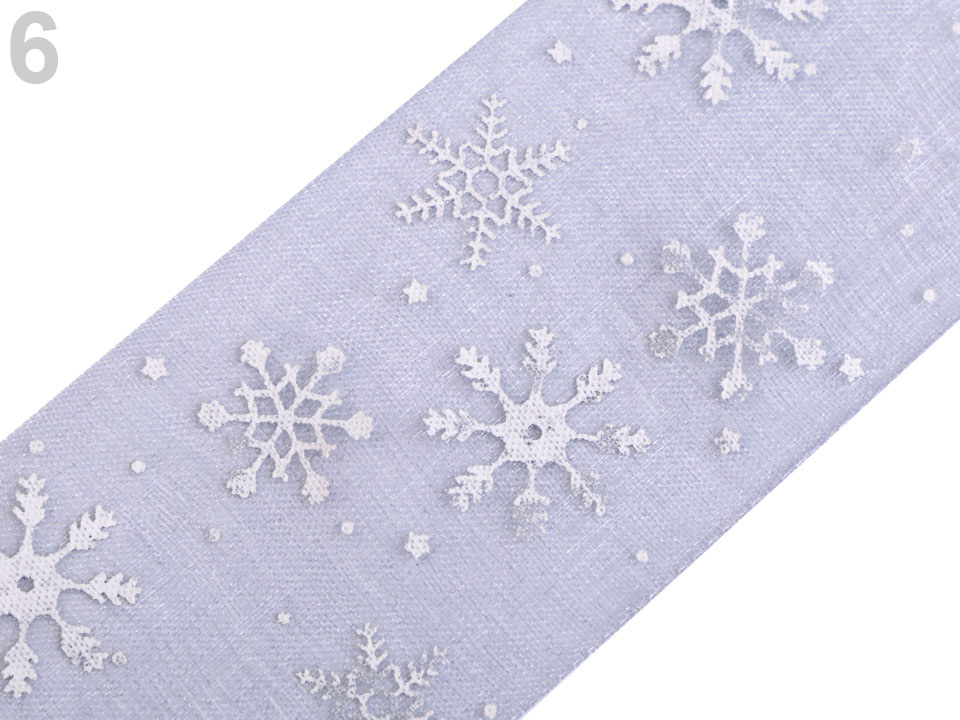 Monofilová stuha s potiskem vloček vás naladí na vánoční atmosféru.