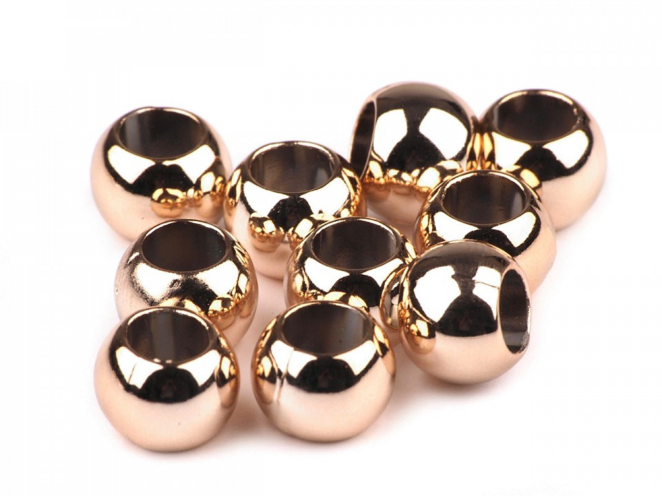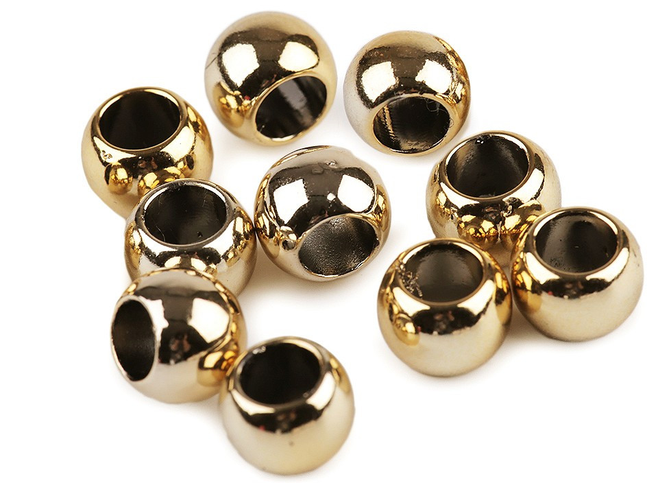 Plastové korálky s velkým průvlekem mají vysoký lesk, který věrně imituje opravdový kov.