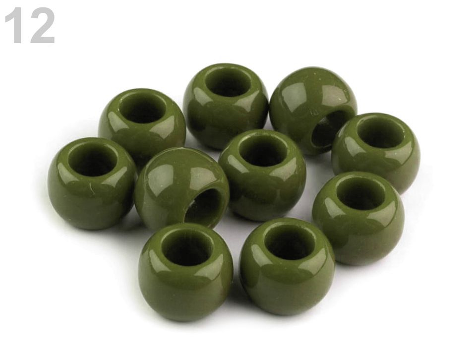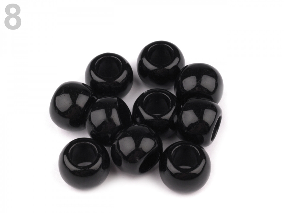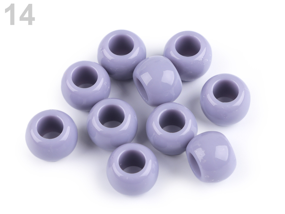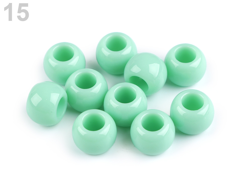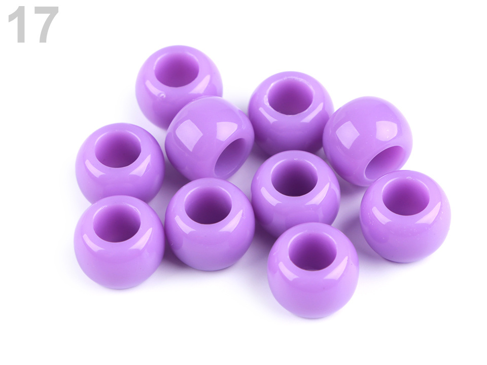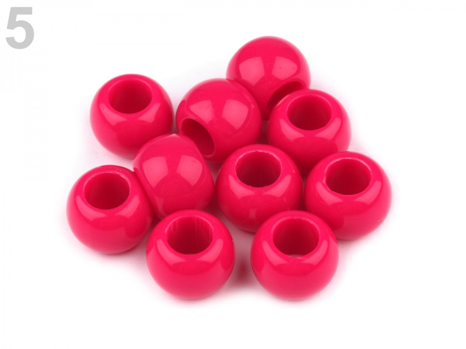 Plastové korálky s velkým průvlekem mají pěkný lesk a syté barvy. Jsou velice kvalitní, všude hladké, nemají žádné otřepení nebo viditelné švy. Hodí se do retro šperků.