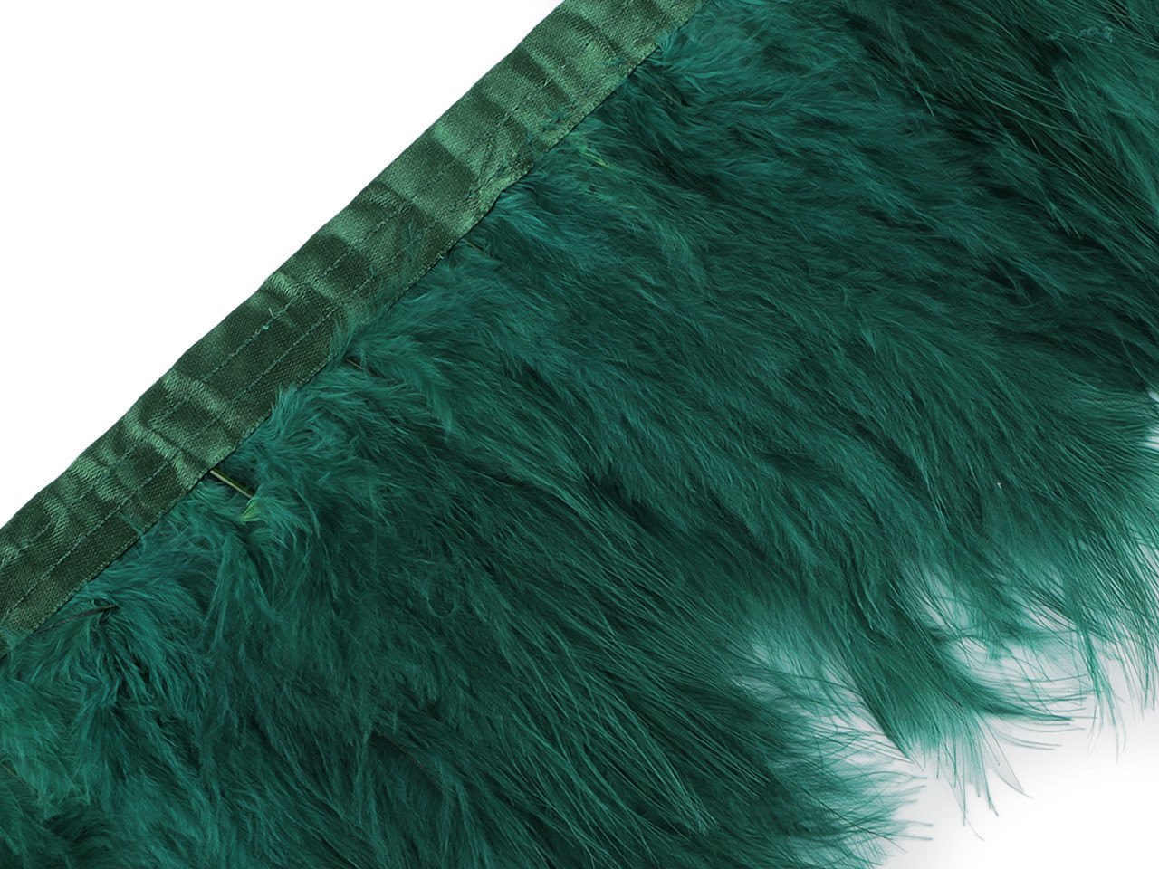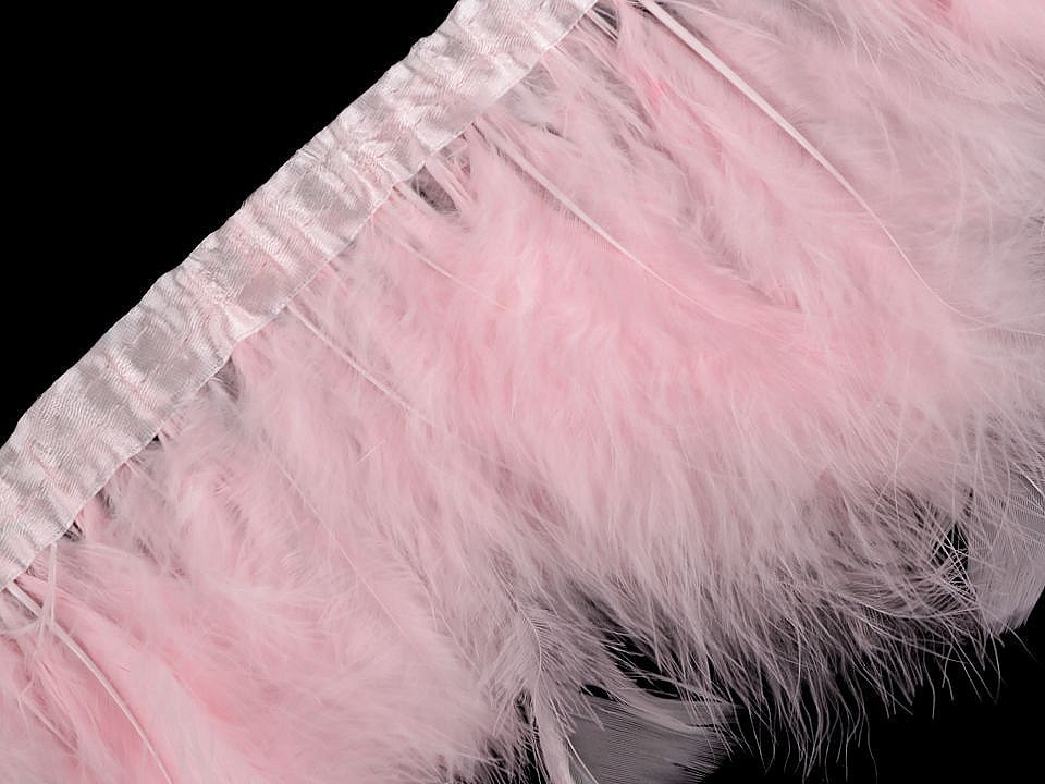 Prýmek z čápa marabu. Peří je poměrně hustě naskládáno přes sebe. Do prýmku je přichyceno saténovou stuhou a prošito. Stuha má stejnou barvu jako peří, může se lišit odstínem.