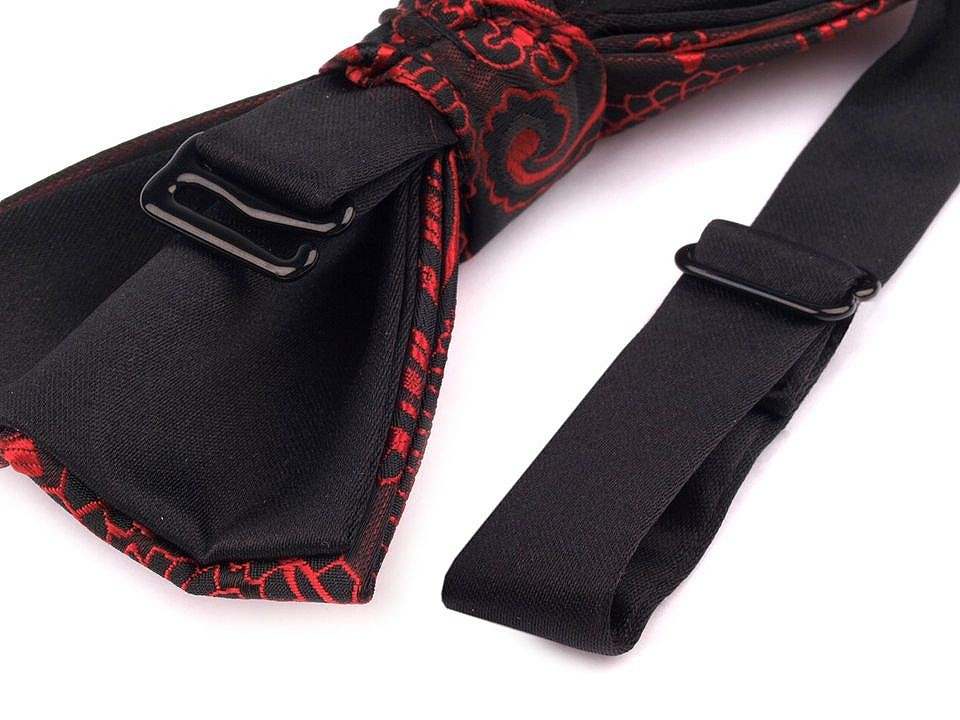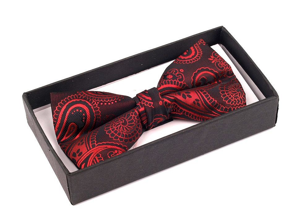 Noblesní společenský motýlek je výjimečný svým kvalitním zpracováním. Tkanina má slzičkový vzor paisley. Je vhodným doplňkem k formálnímu obleku, k fraku nebo ke smokingu. Využijete jej na plesy nebo taneční kurzy, pánové, kteří jsou zvyklí pohybovat se ve vyšších společenských třídách si jej mohou vzít i na obchodní jednání.