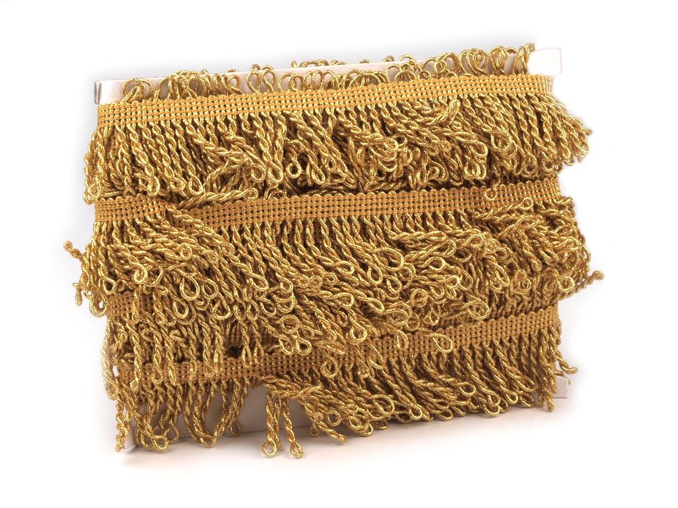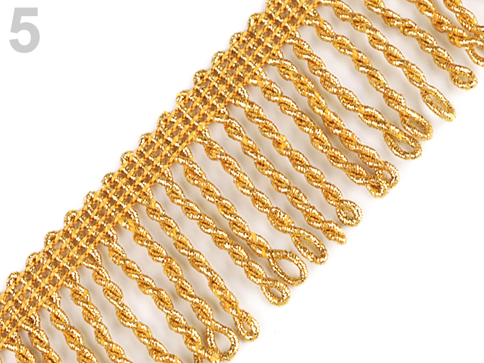 Elegantní leonské třásně jsou splétané a zdobí je třpytivý lurex.