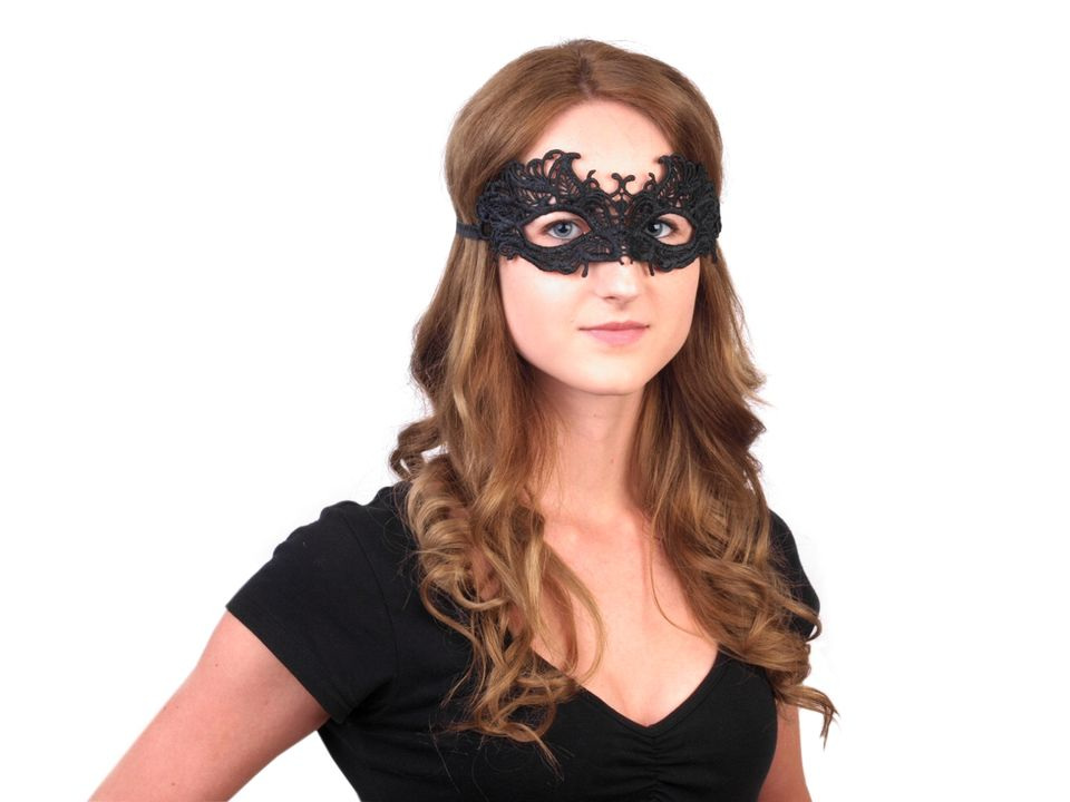 Svůdná a tajemná budete s touto elegantní škraboškou. Je vyrobená z naškrobené krajky a skvěle drží tvar. Zavazuje se pomocí saténové stuhy. Škrabošku využijete na různé večírky, párty, karneval apod.
