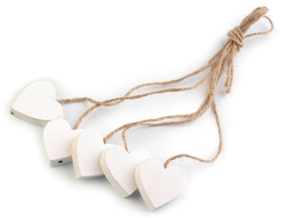 Vintage srdce je vyrobené ze dřeva a je k němu připevněný jutový provázek. Srdíčka nejsou lakovaná, dá se na ně psát nebo kreslit. Jsou vhodná na ozdobení láhví, dárků, věnců a dalších dekorací. Prakticky je můžete pověsit kamkoliv. Vyniknou také jako svatební dekorace.