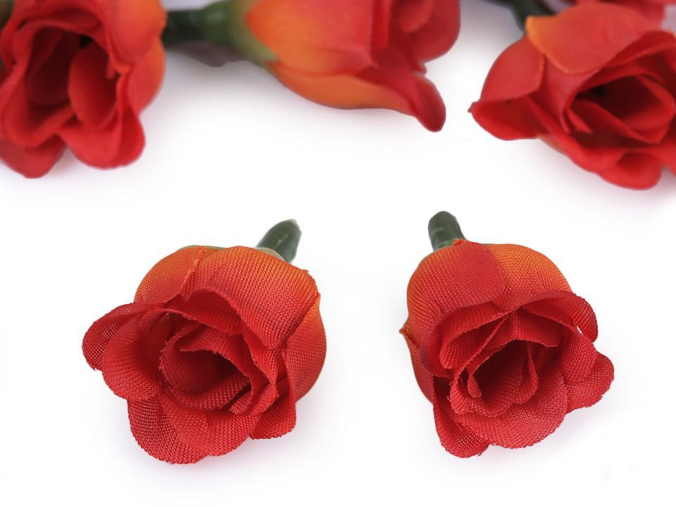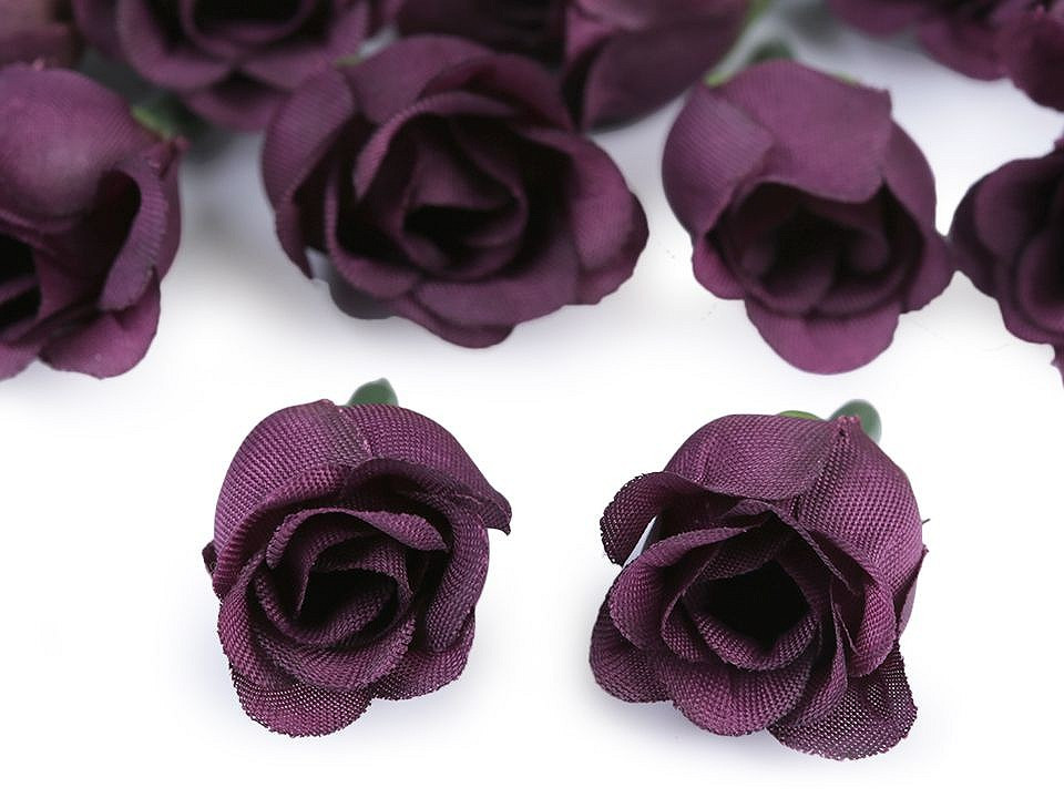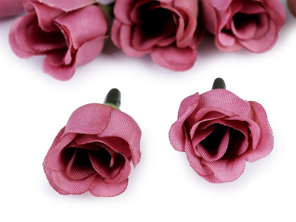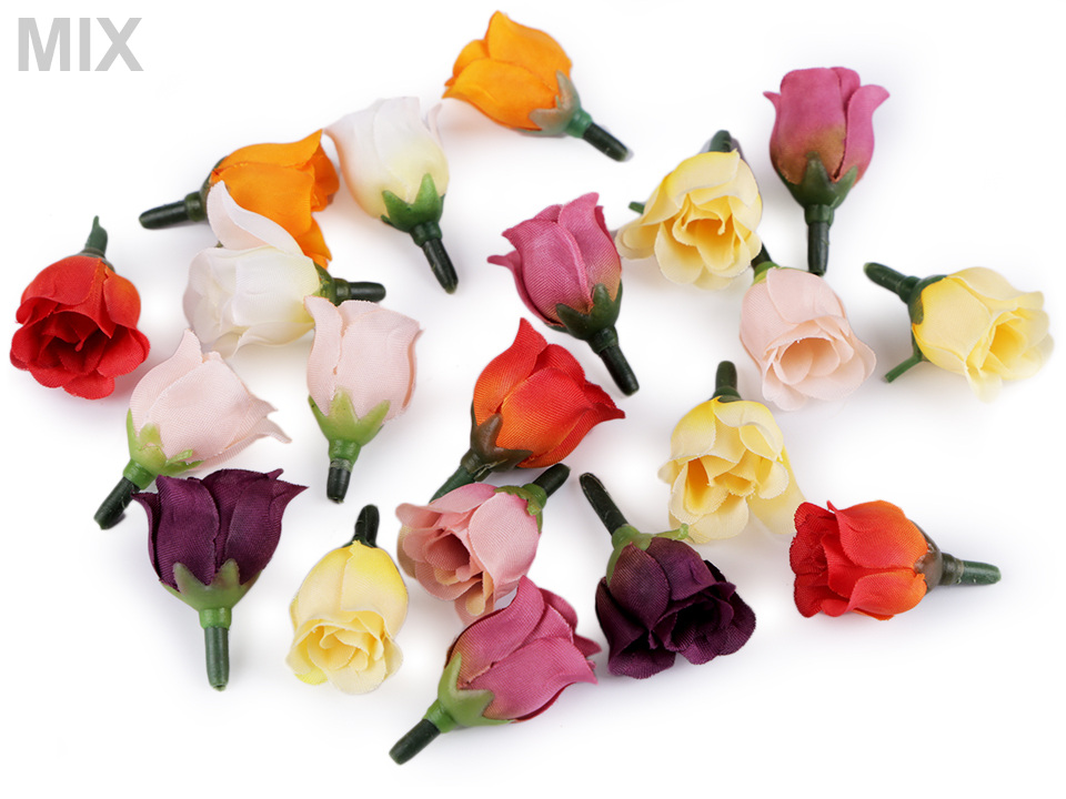 Drobné umělé květy růží lákají k přivonění. Jsou vyrobené z polyesteru, mají plastový stonek, jehož barva se může lišit.