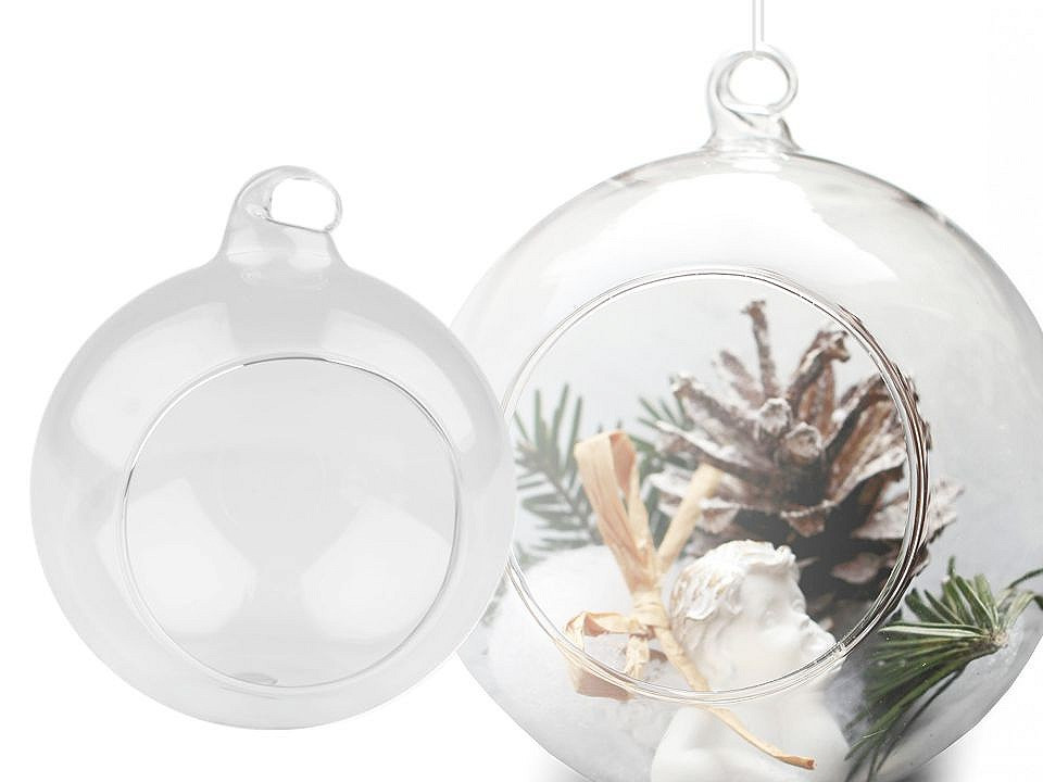 Skleněnou kouli s otvorem, neboli také aerárium, využijete jako působivou závěsnou dekoraci. Uvnitř se bude skvěle dařit rostlinám menšího vzrůstu, například sukulentům nebo masožravkám. Místo rostlin můžete do aerária naaranžovat také písek, kameny, umělé květy či svíčky.