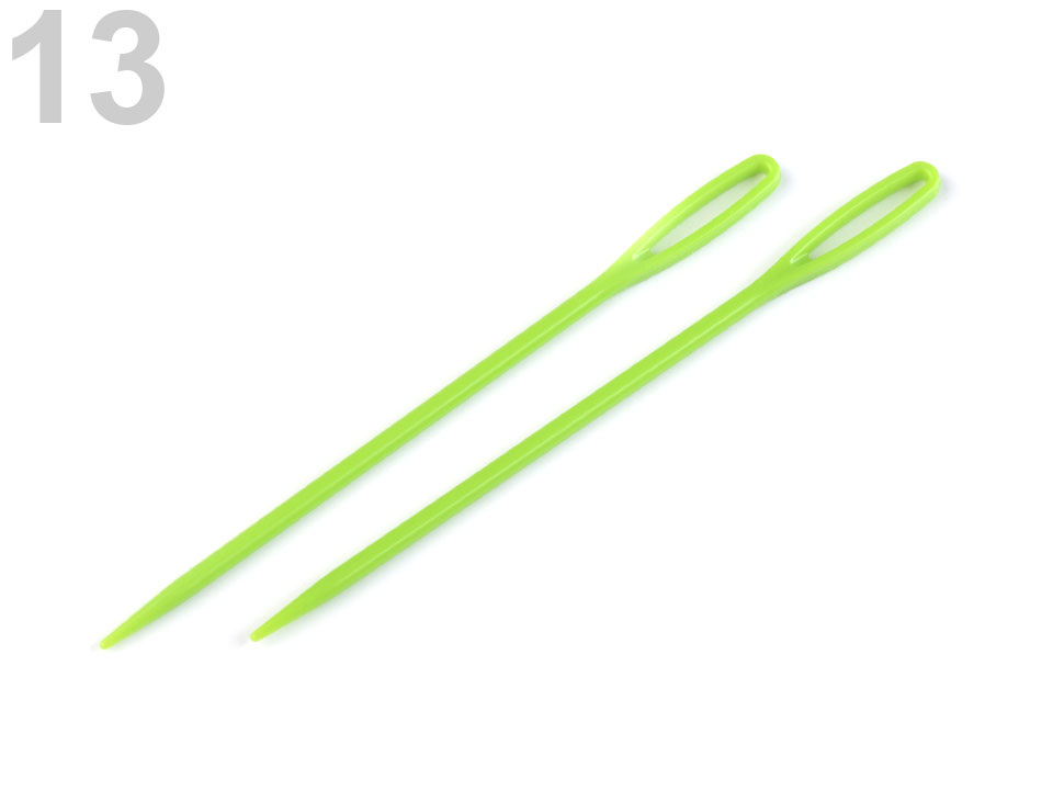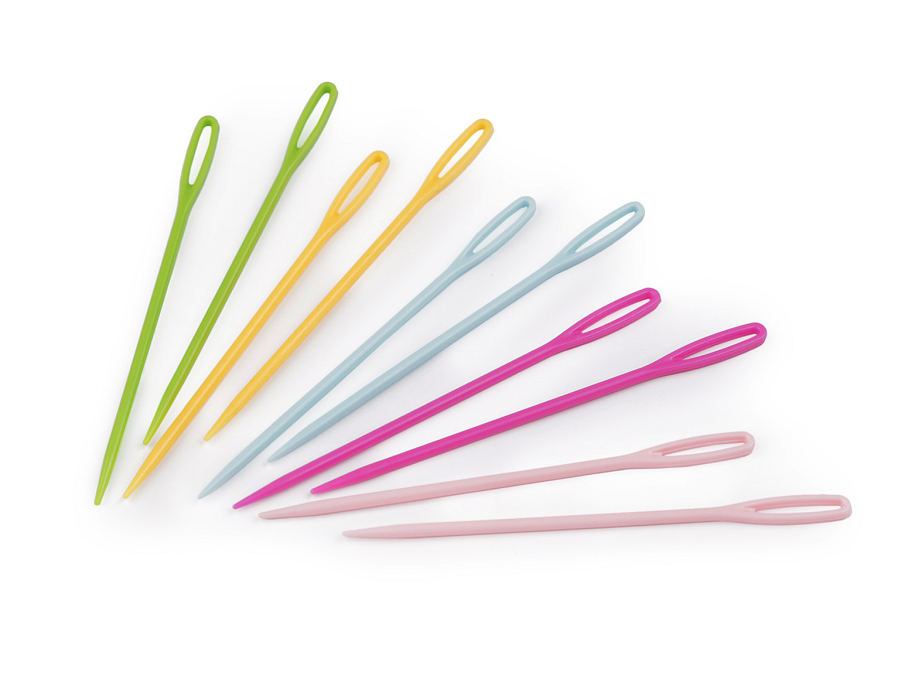 Vyšívací jehly jsou vyrobeny z plastu, díky tupé špičce a velkému očku jsou vhodné pro dětské vyšívání. Využijete je také pro zapošívání příze při pletení nebo na stužkové vyšívání. Očkem jednoduše provlečete stuhu i hrubou přízi, s níž můžete vyšívat na kanavu.
