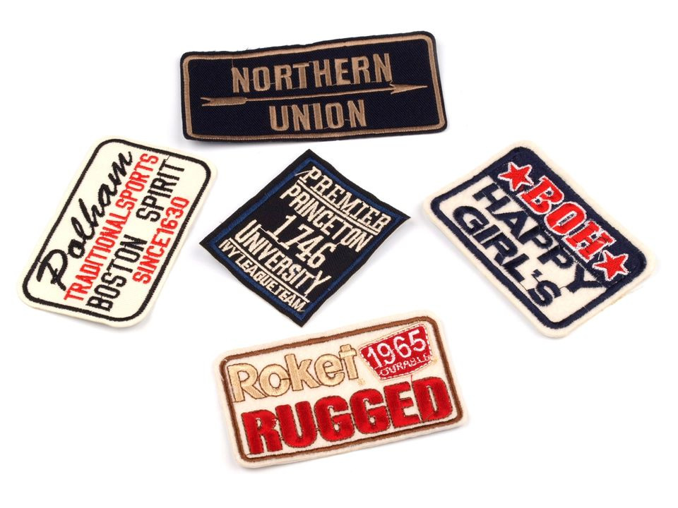 Mix nažehlovaček obsahuje různé motivy s nápisy a logy. Využijete je na zdobení oděvů i doplňků, ale také na zakrytí případných nedostatků na nich.
