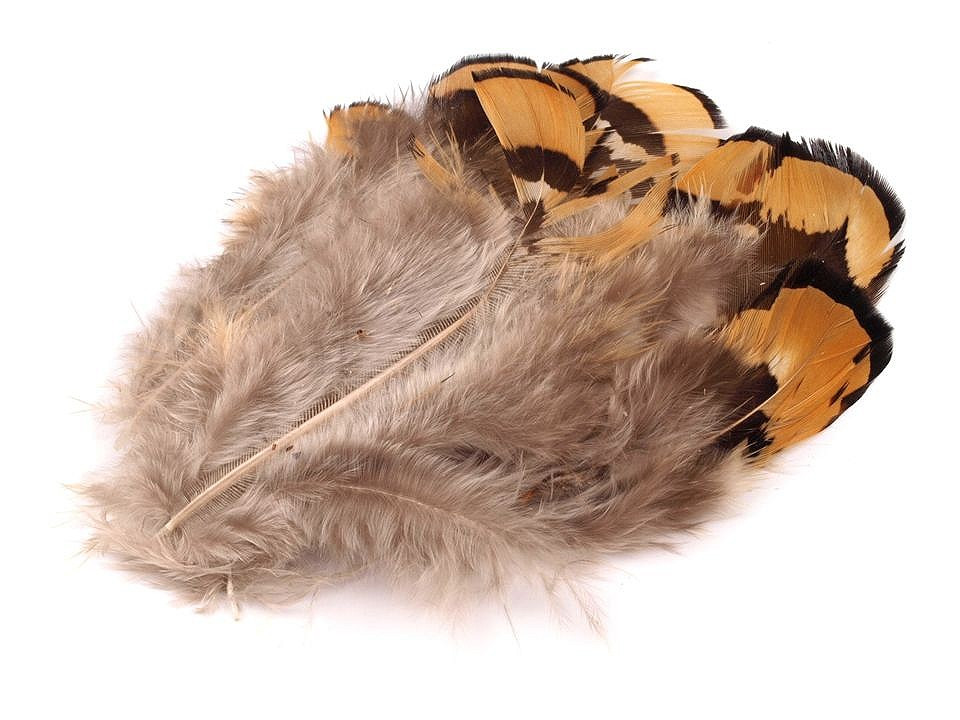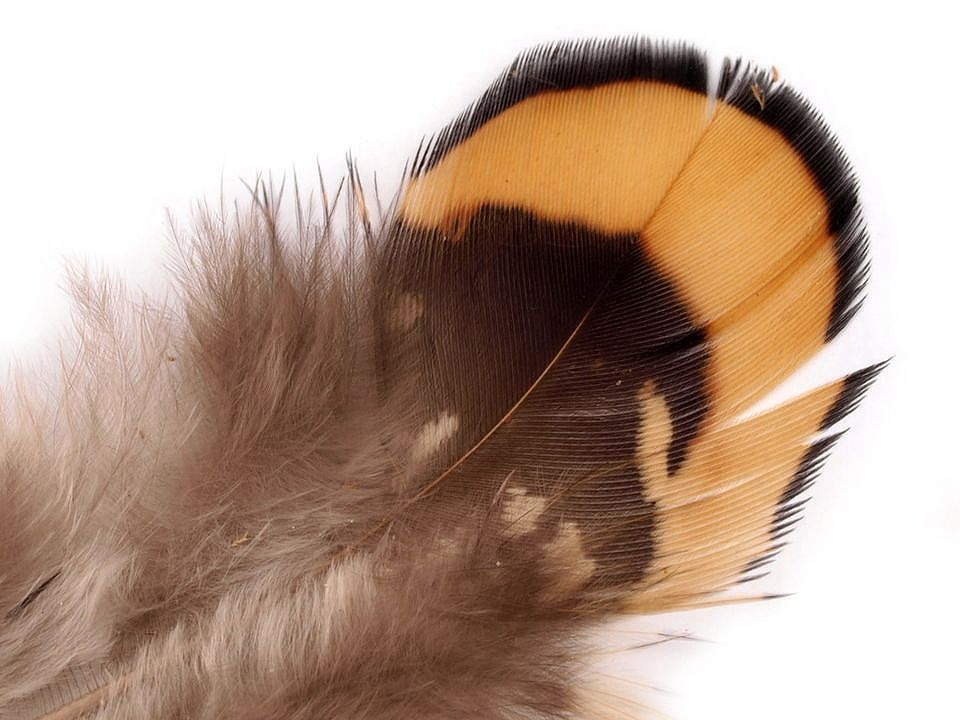 Ozdobná pírka z bažanta mají ve spodní části jemné chmýří. Horní polovina peří má zajímavé zabarvení.