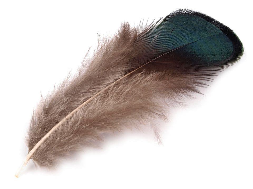 Ozdobná pírka z bažanta mají na koncích jemný perleťový lesk.