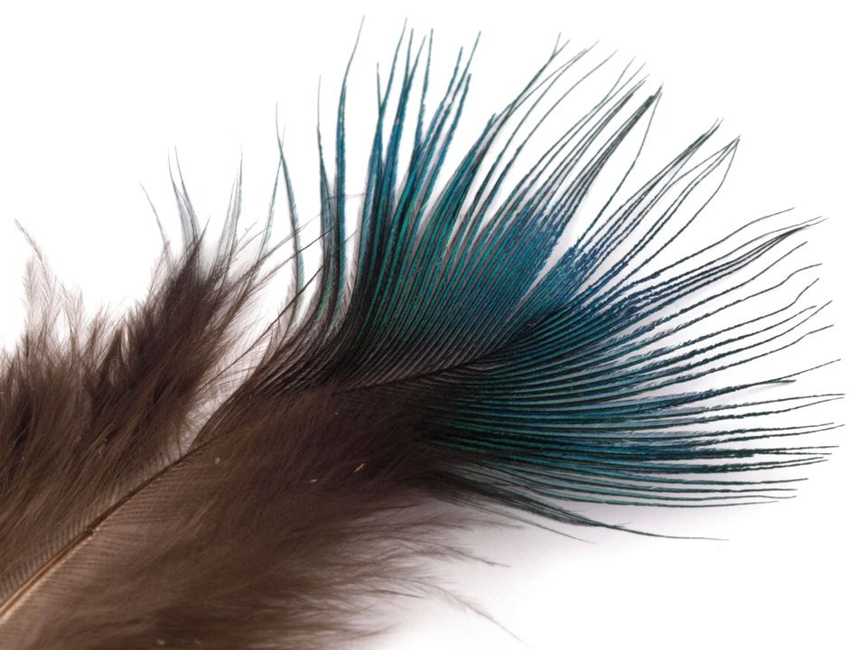 Ozdobná pírka z páva upoutají pozornost svou barevností.