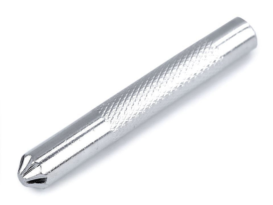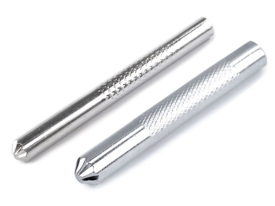 Kovový průbojník je skvělým pomocníkem při dírkování látky například k narážecím knoflíkům. Je vhodný na kůži i textilie. Umístěte ho na látku a udeřte do něj kladivem, tím se udělá v látce dírka, která se nebude párat, naopak se zpevní.