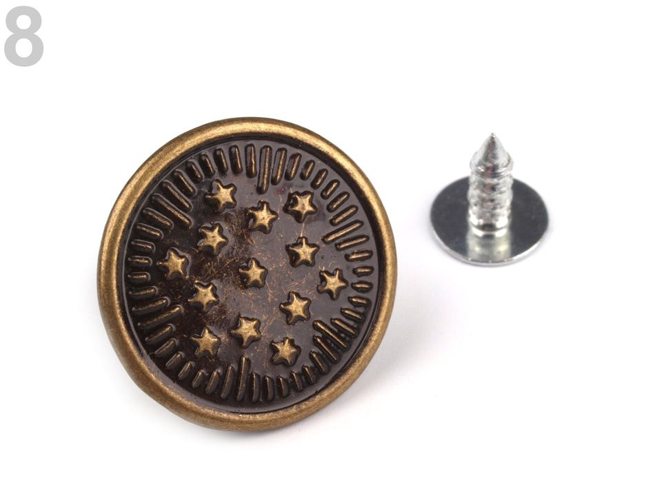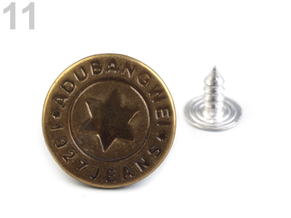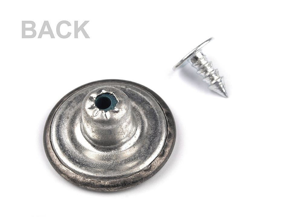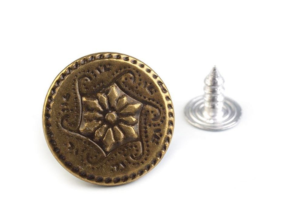 Narážecí knoflík se skládá ze dvou částí, které do sebe narazíte, například kladivem. Je vyrobený z magnetického kovu. Knoflík využijete na džíny, džínové bundy, vesty apod.