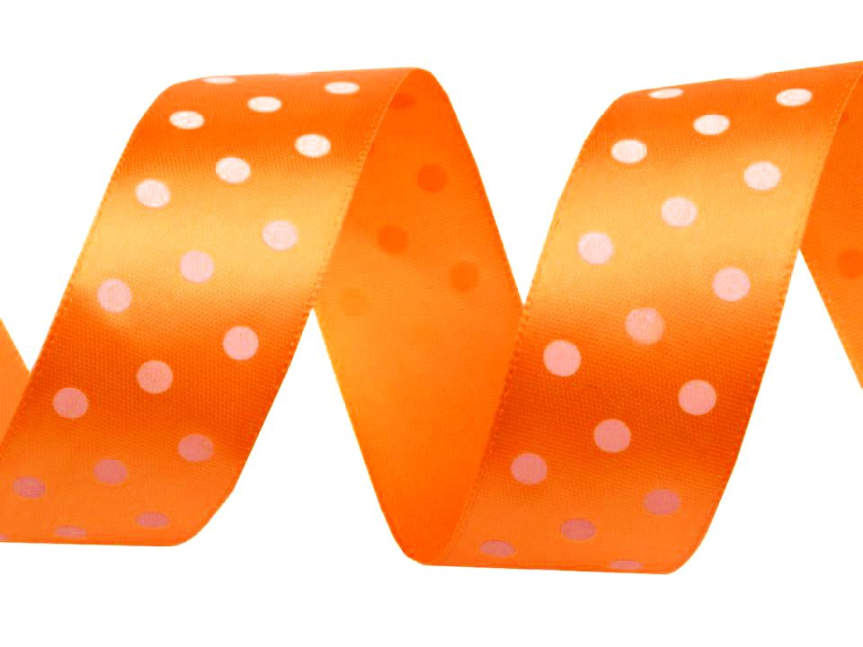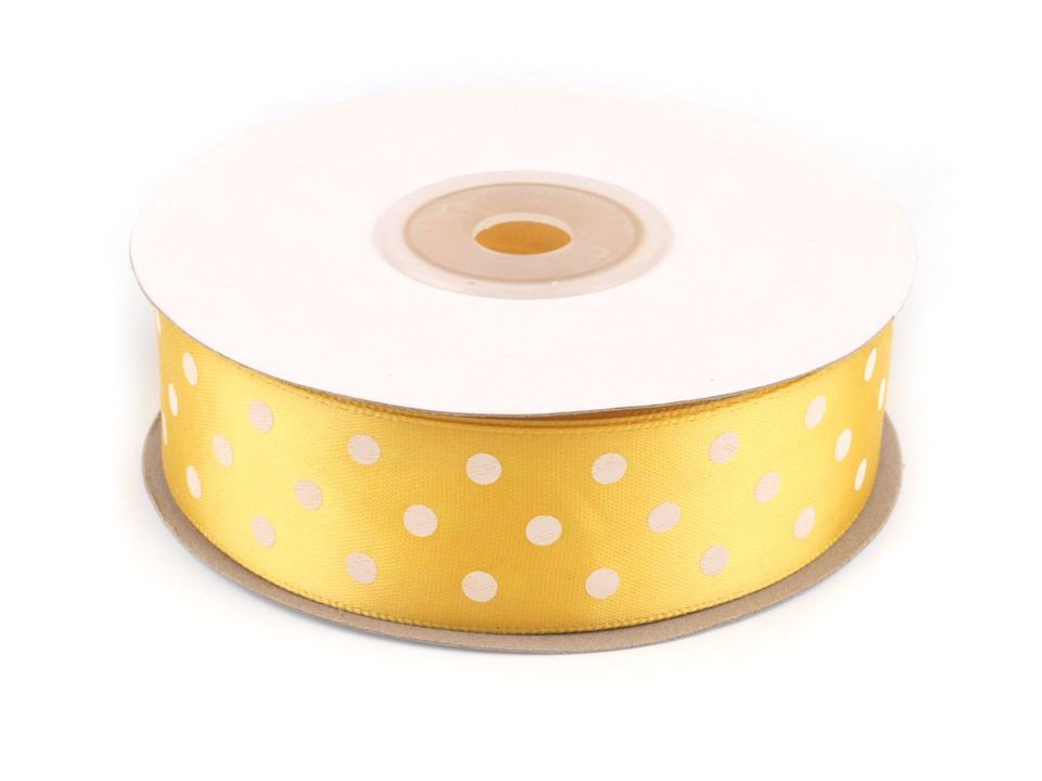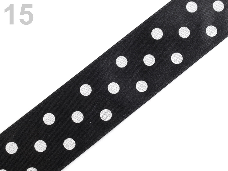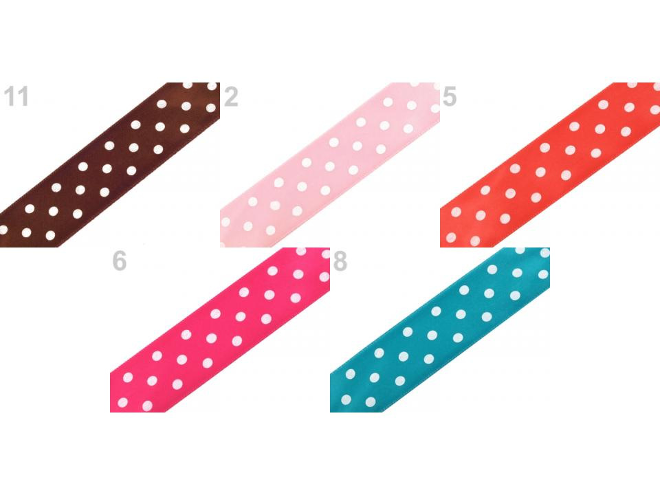Saténová stuha vám svým potiskem s puntíky zvedne náladu. Její povrch se jemně leskne. Potisk je jednostranný.