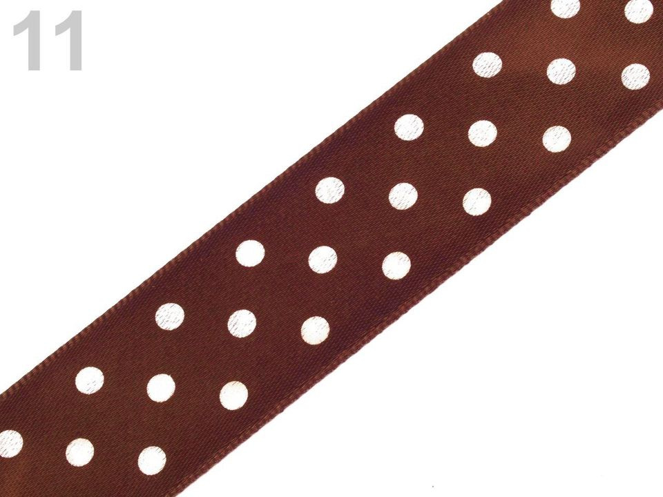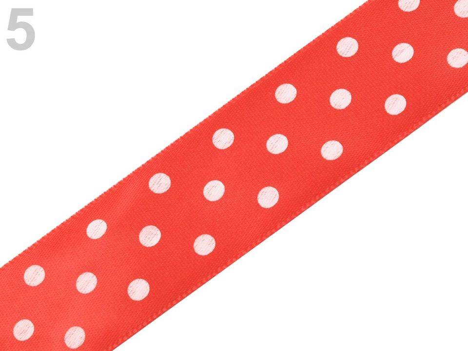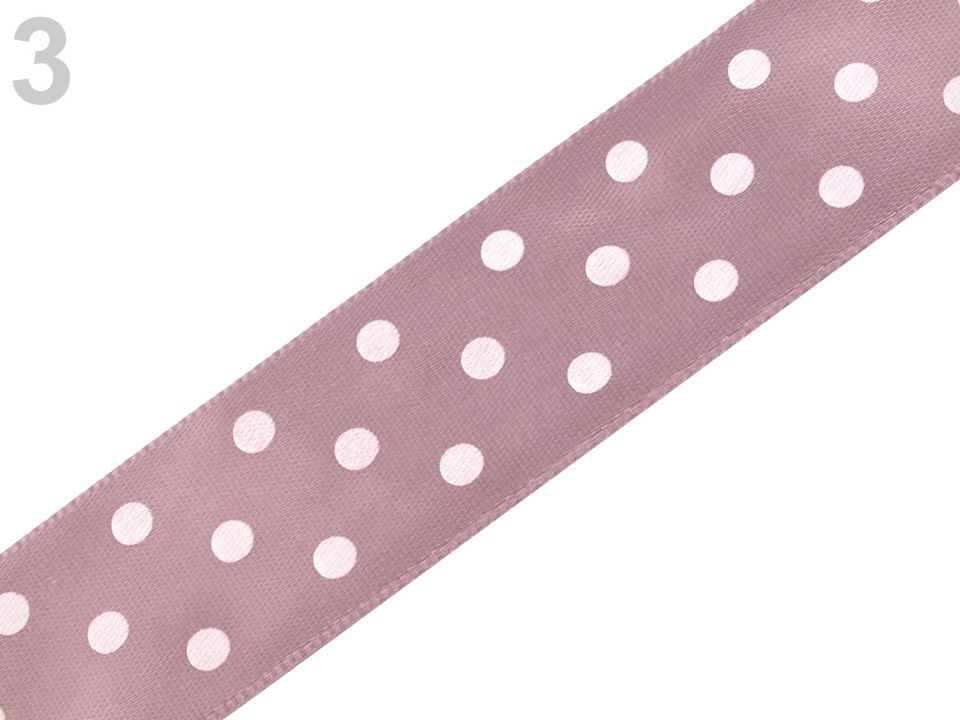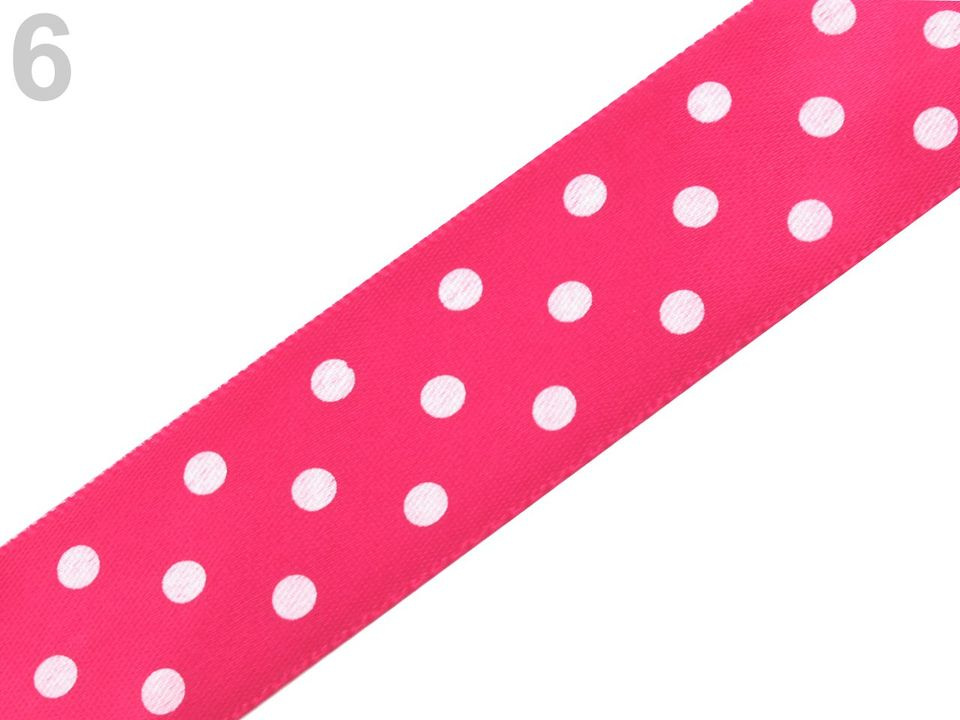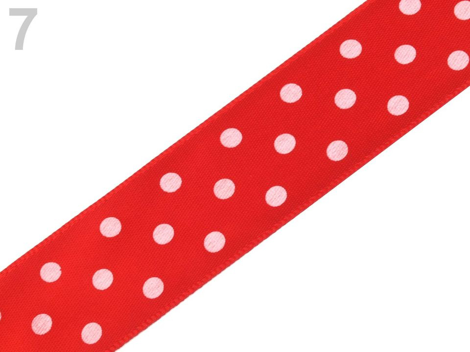 Saténová stuha vám svým potiskem s puntíky zvedne náladu. Její povrch se jemně leskne. Potisk je jednostranný.