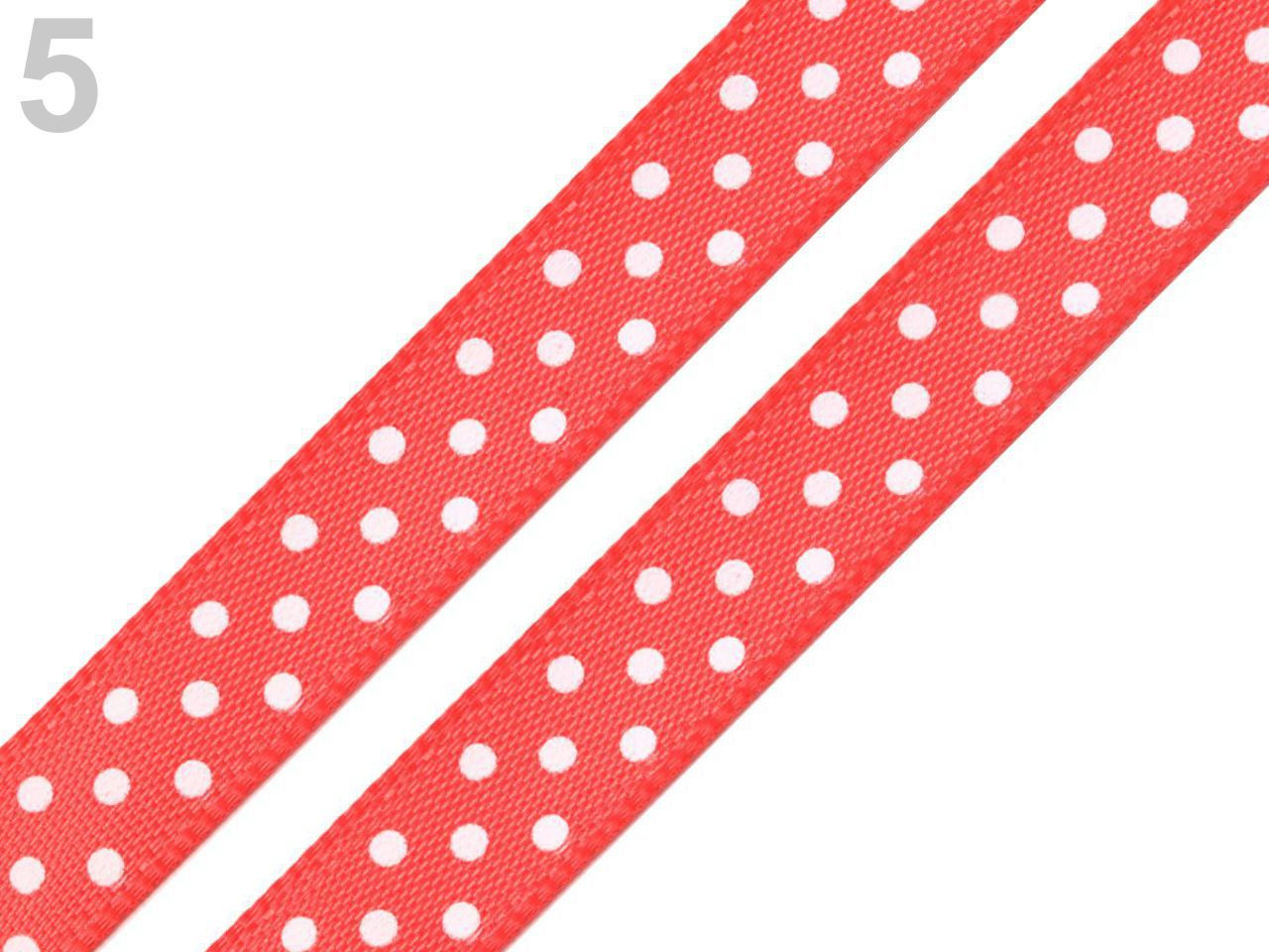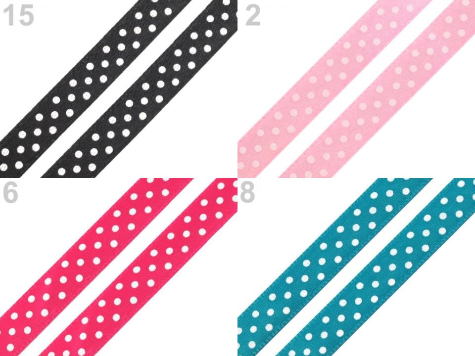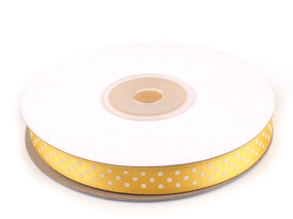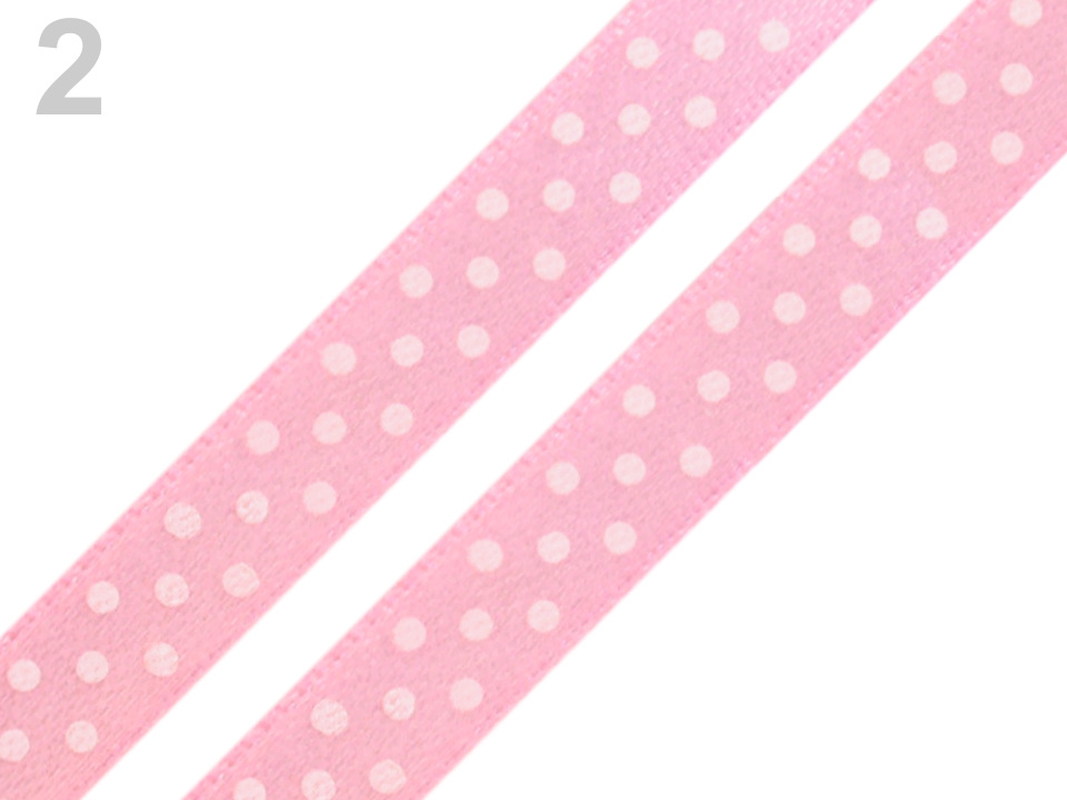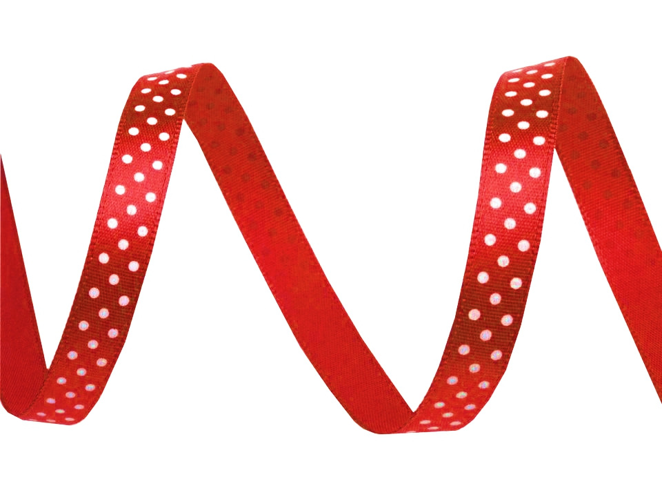 Saténovou stuhu zdobí potisk puntíků, který je jednostranný. Stuha je pevná, není pružná.