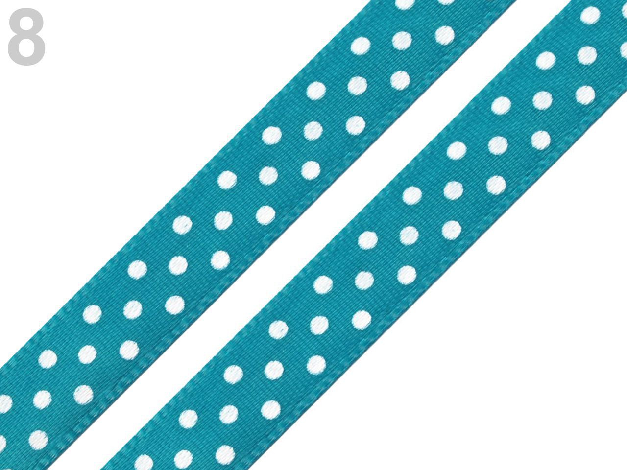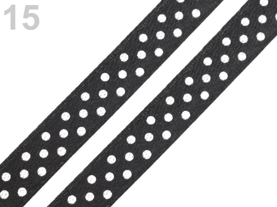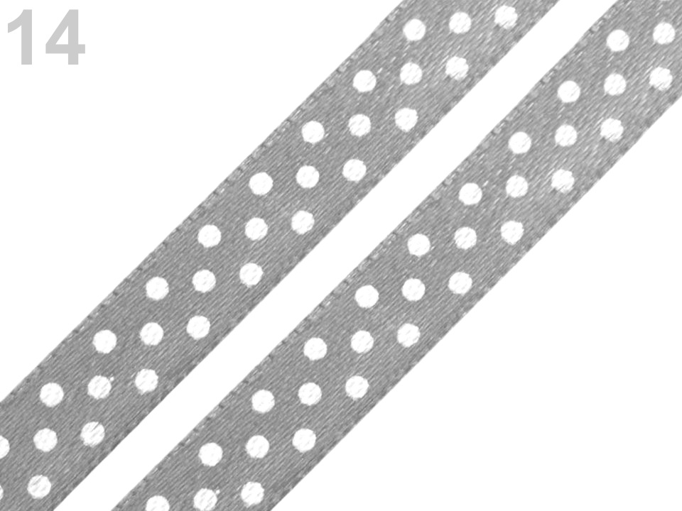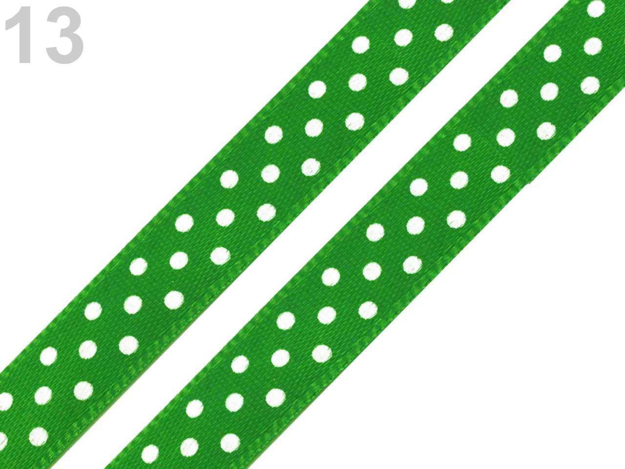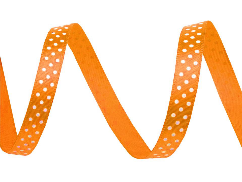 Saténovou stuhu zdobí potisk puntíků, který je jednostranný. Stuha je pevná, není pružná.