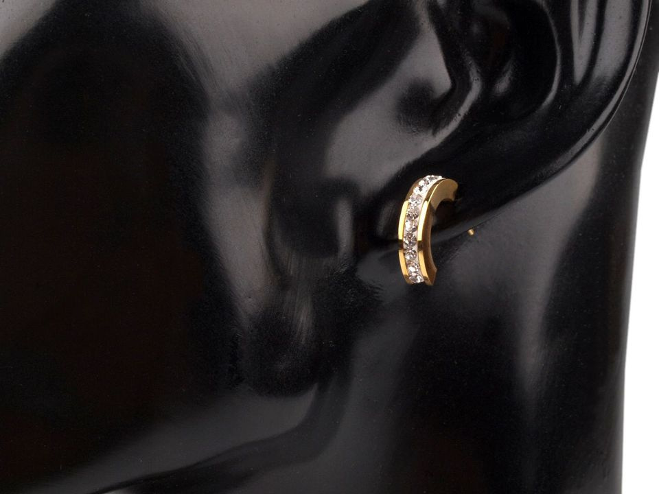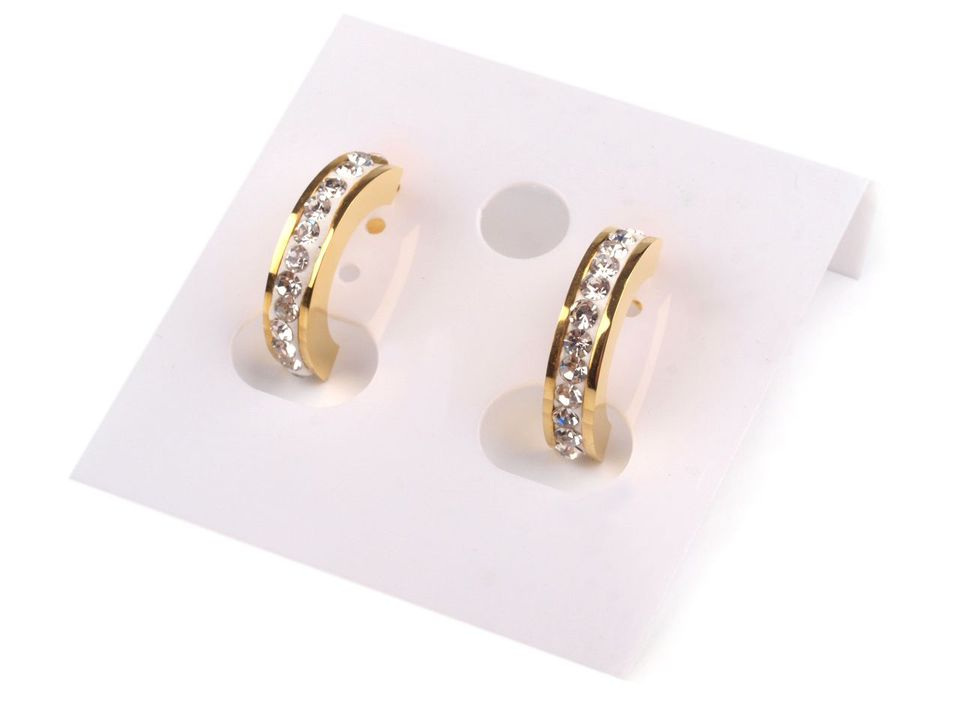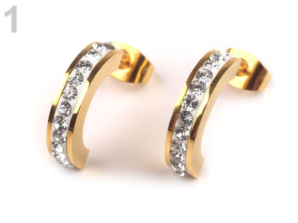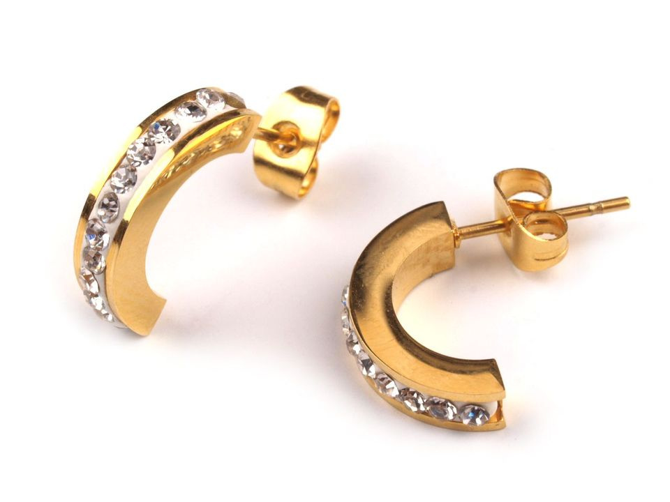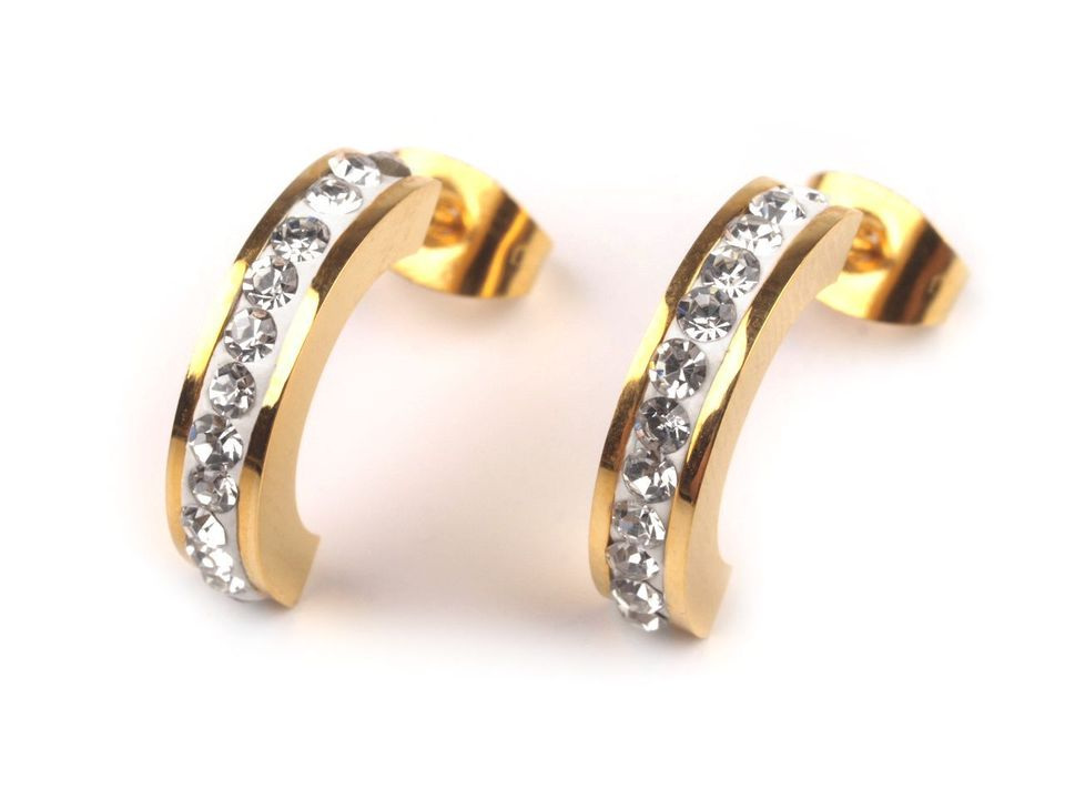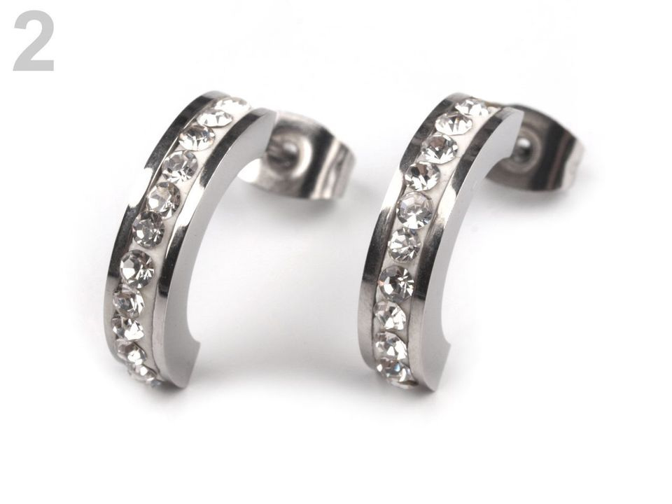 Náušnice z nerezové oceli jsou skvělou kombinací jednoduché elegance a moderního vzhledu. Jsou oblíbenou variantou kovových šperků. Mají půlkruhový tvar, který je ozdobený broušenými kamínky, jež se oslnivě třpytí při každém pohybu. Tento jednoduchý šperk využijete pro každodenní nošení, můžete jej rozličně kombinovat se všemi outfity.