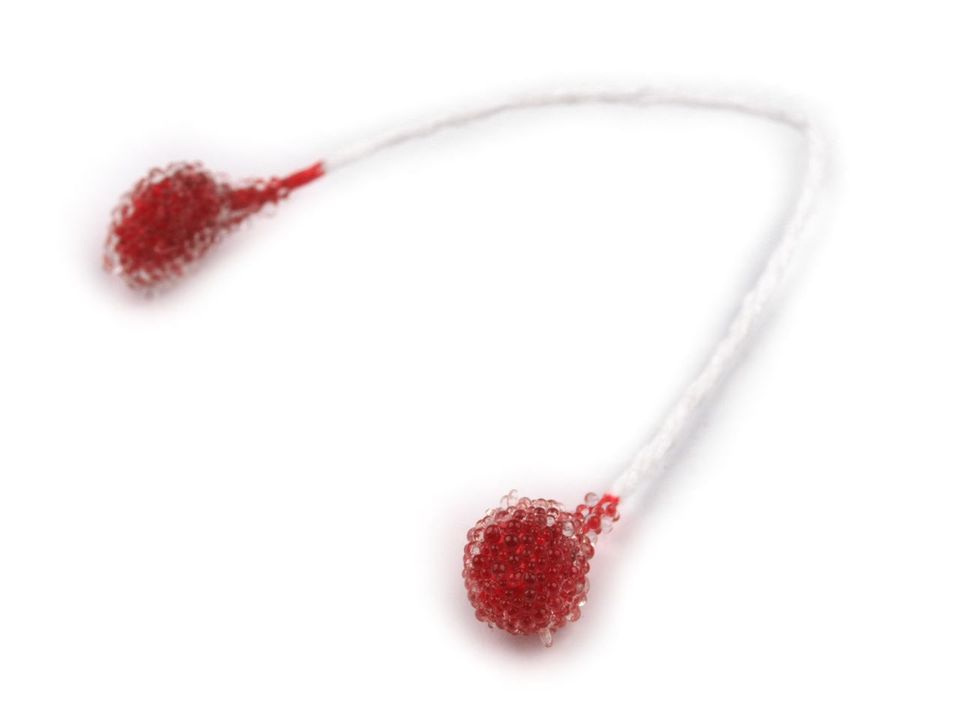 Pestíky jsou vhodné k aranžování. Jejich povrch je zpestřený drobnými transparentními kuličkami z plastu, které vytvářejí dojem námrazy. Na každém konci bavlněné šňůrky je jedna ojíněná kulička.