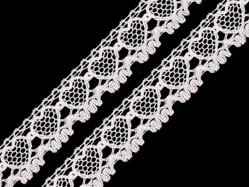 Paličkovaná krajka vás zaujme svým romantickým vzorem se srdíčky. Doporučujeme ji žehlit přes tkaninu.