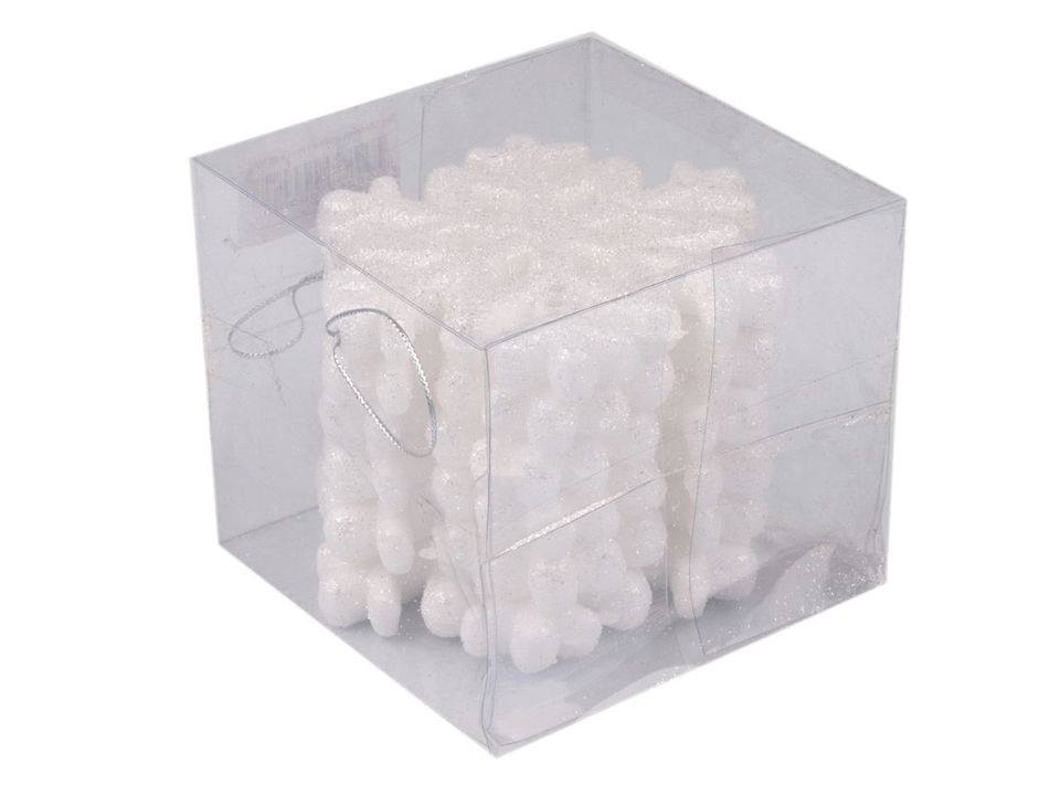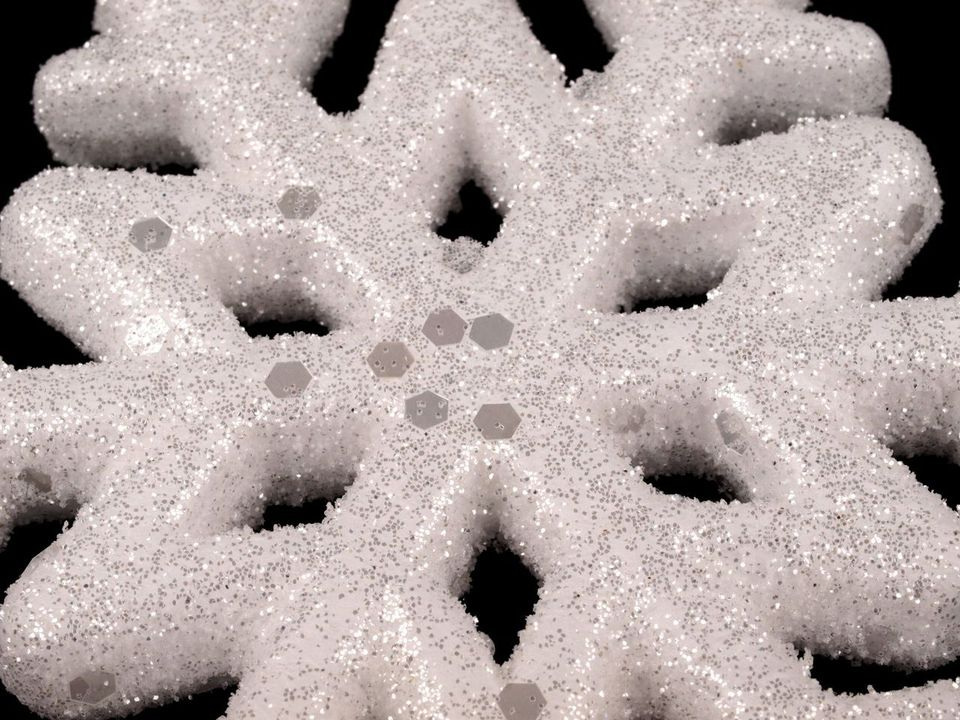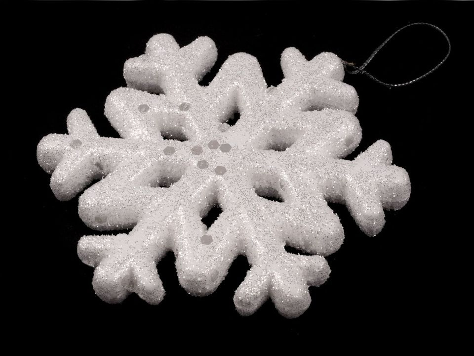 Dekorační vločky vám nesmí během zimního období chybět. Jsou vyrobené z polystyrenu. Bohatě je zdobí třpytivé glitry. Díky připevněnému lurexovému poutku můžete vločky pověsit jako dekoraci na stromek, na dveře, do oken nebo volně do prostoru.